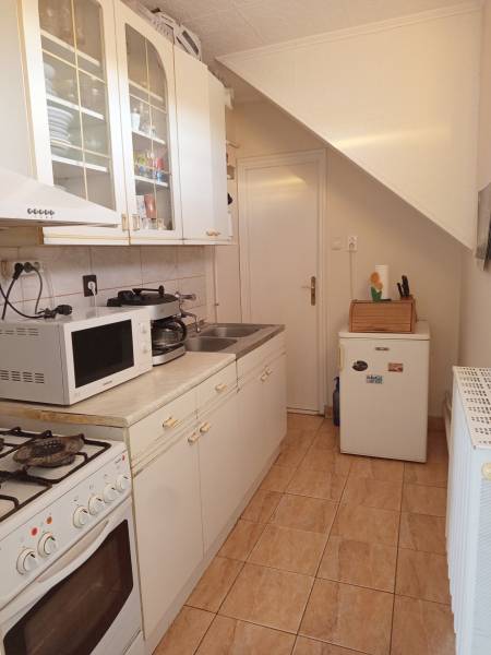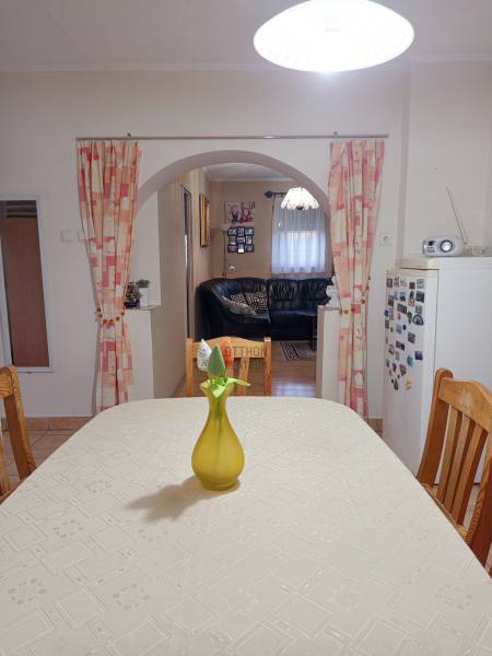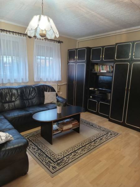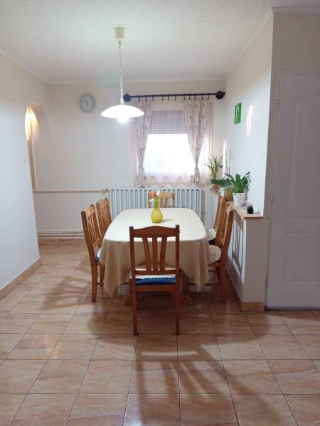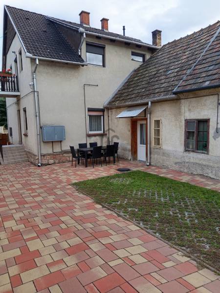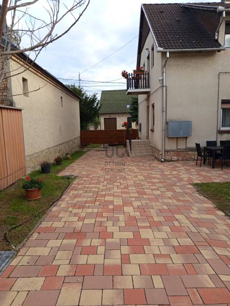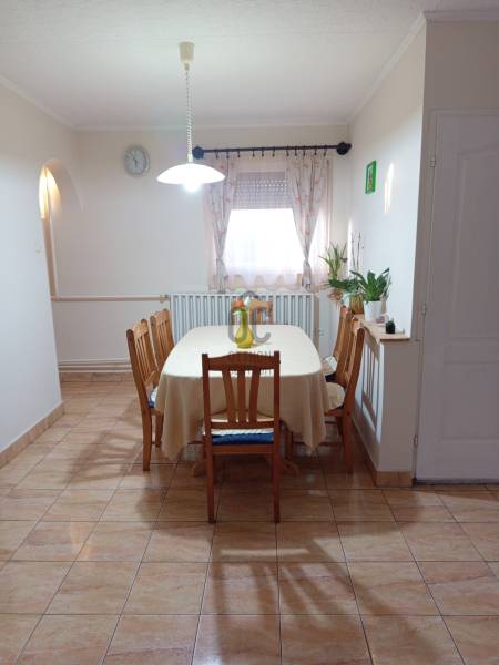 Eladásra kínálunk Tatán egy kiváló adottságokkal rendelkező, kétgenerációs családi házat, amely két külön helyrajzi számon szerepel, így akár befektetésnek, akár összeköltöző családtagok részére is ideális választás lehet.Az ingatlan főbb jellemzői:Telek mérete: 795 m²Lakótér: két különálló lakás, jól kialakított helyiségekSzerkezet:Alsó szint: 1970-ben épült, tégla falazattalFelső szint: 1993-ban került beépítésre, Habisol (könnyített beton) szerkezettelHelyiségek elosztása:Földszint:Előszoba2 hálószobaTágas étkezőKonyhaKülön WCFürdőszoba WC-velEmelet:ElőszobaTágas étkezőKonyha2 szobaNappaliFürdőszobaKülön WC2 m²-es erkélyAz emeleti szint álmennyezettel lett ellátva, a fürdőszobát felújították, valamint az egyik szoba gipszkarton válaszfallal lett kettéosztva, így jött létre két hálószoba és egy nappali.Műszaki adatok, extrák:Fűtés:Gáz cirkó (2006-ban teljes rendszer cserélve, beleértve a radiátorokat is)Alternatív fűtési lehetőség: mindkét szinten cserépkályhaNyílászárók:Földszinten: műanyag nyílászárók redőnnyelEmeleten: Sofa típusú ablakok redőnnyelTető:15 cm-es szigeteléssel ellátvaVillamoshálózat cserélveKert és külső melléképületek:A 795 m²-es udvar gondozott, részben térkövezett, és a következő extrákat kínálja:2 garázsNyári konyhaTárolókMűhelyTöbb gyümölcsfa a kertbenTöbb autó beállási lehetőség:2 autó a ház előtt2 autó a garázsokbanTovábbi parkolás a térkövezett kertbenTársasházi jogviszony, két külön lakásként használhatóAz ingatlan társasházzá van nyilvánítva, külön mérőórákkal rendelkezik, így teljesen független élettér biztosított a két szint között – ideális két generáció számára, vagy akár bérbeadásra is tökéletesen alkalmas.Összegzés:Ez a tatai ingatlan kiváló választás lehet:több generáció együttélésére,befektetésként kiadásra,vagy akár vállalkozás/családi otthon kombinációjaként.A két külön lakrész, a tágas udvar, valamint a sok melléképület és parkolási lehetőség együtt ritka lehetőséget kínál a városban.Amennyiben felkeltette érdeklődését az ingatlan, további információért illetve megtekintéssel kapcsolatban várom hívását.