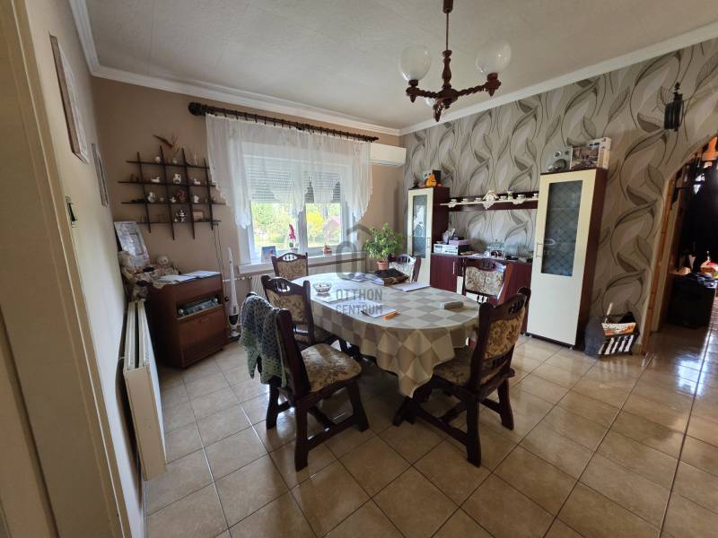 Na képzeld, van egy ház a zsákutca legvégén, ahol kb. a béke főhadiszállása van. Se átmenő forgalom, se dudálás, csak madarak csicseregnek, meg a szomszéd macska jár át ellenőrizni, hogy rendben van-e minden. A kert full rendezett, karbantartott, és tele van termő gyümölcsfákkal – tehát itt a “boltbajárás gyümölcsért” annyit jelent, hogy kimész papucsban a kert végébe. A kertben van szaletli, ahol nyáron simán mehetnek a fröccsözős sztorik, plusz fedett kocsibeálló, hogy az autó ne piruljon le a napon. Ja, és van egy gazdasági épület is, ami olyan, mint a gardrób Narnia-kapcsolattal: minden elfér benne, amit nem akarsz bent tartani.A ház alatt egy giga pinceszint van, ahol simán elfér egy konditerem, egy bandaterem, vagy csak az összes cuccod, amit “jó lesz még valamire” címszóval gyűjtögetsz. A fűtést két kazán nyomja: vegyes tüzelésű és gáz – a gázkazán amúgy vadonatúj, alig egy éves, szóval itt nincs para a hidegben.Belül a földszinten van minden, ami kell: 2 szoba, étkező, konyha, fürdő, külön WC. Az emeleten még egy szoba, tároló és egy beépíthető padlástér – vagyis ha akarod, itt még bőven van hely egy gamer szobának, filmes kuckónak vagy gyerekszobának, ha úgy hozza az élet.És a csavar: hiába vagy a világ végén (zsákutca, nyugi, csend, béke), a buszmegálló kb. pár perc séta. Tehát egyszerre falusi chill és városi kényelem.Ez a ház nem csak egy ház – ez egy életmód: gyümölcsfák, szaletlis fröccs, hatalmas terek és nulla idegesítő zaj. Ha keresed a helyet, ahol jó lenni, akkor megtaláltad.Ez a hirdetés az Otthon Centrum Árgaranciás csomagjának része, melyről bővebb információt a http://www.oc.hu/felezocsomag weboldalon találEz az ingatlan a \"Felező csomag\" megbízási portfólióhoz tartozik. Részletek az Otthon Centrum weboldalán.