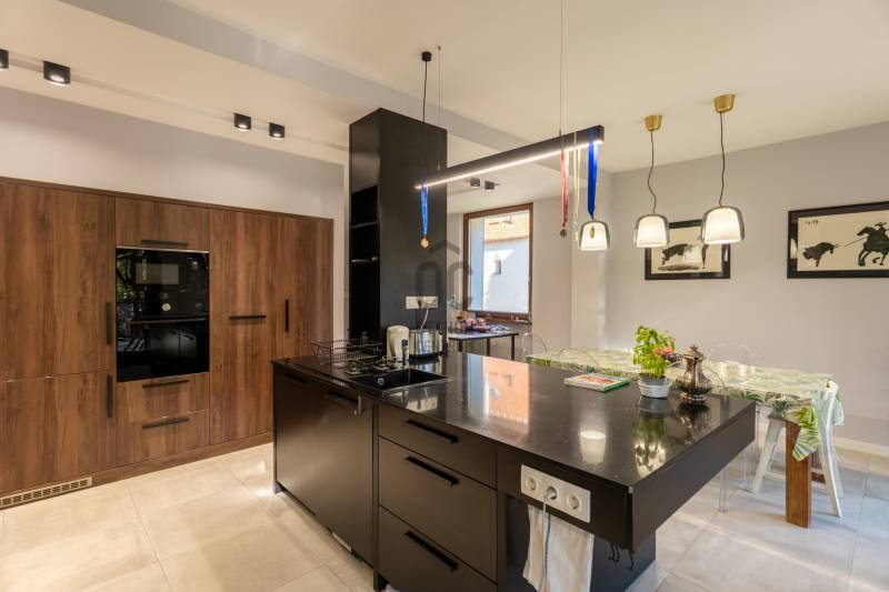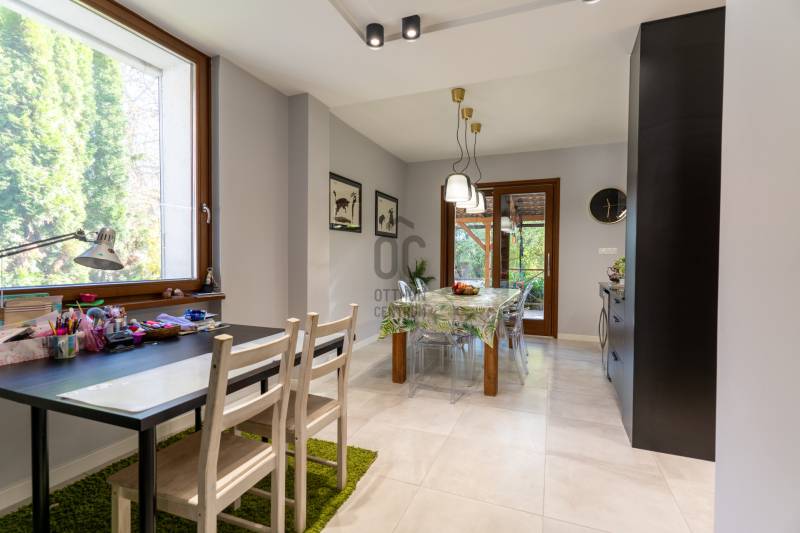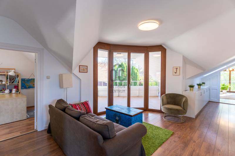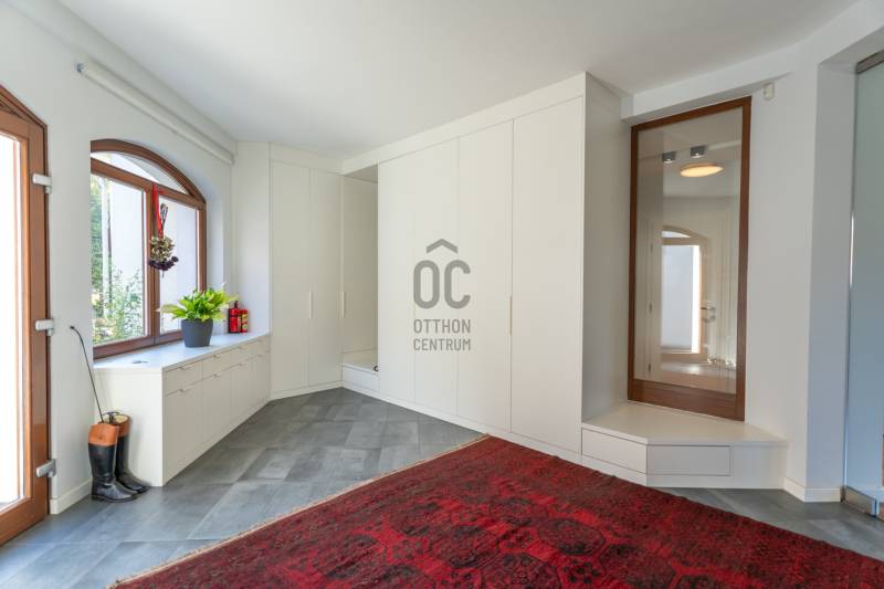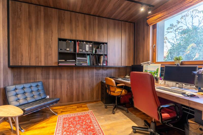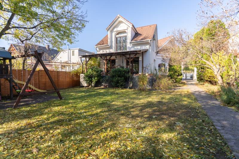 Eladó Pest vármegyében, Budaörs központi, mégis csendes és zöld részén egy nappali + 5 szobás, modernizált, teljes körűen felújított, élhető, praktikus terekkel és intim kerttel rendelkező családi ház. Szívem szerint többet nem is írnék, mert ez tényleg egy olyan ingatlan, amit látni, érezni, megtapasztalni kell, minden másra ott az adatlap és a MasterCard... Ízlésről nem illik vitatkozni, de garantálom, hogy aki megnézi beleszeret.A tulajdonos hölgy belsőépítész, amit a kifinomultság, a sok-sok apró, de jó ötlet híven tükröz.Hogy eleget tegyek a szakmai minimumnak egy-két gondolat, tény és adottság az alábbiakban:- Az elmúlt 4 évben szinte minden felújításra került vagy cserélve lett: a hőszivattyús fűtés és a gáz cirkó kellő rugalmasságot ad, amihez jár a H-tarifa, a napelemhez és az elektromos autótöltéshez pedig kiépítették a kiállásokat, a nyílászárók 3 rétegű üvegezéssel, zsaluziával, redőnnyel és szúnyoghálóval szereltek.- A tető és a homlokzati határoló falak is szigeteltek.- A felújított villamoshálózat mindent elbír, 3x32A és 3x16A bővítést kapott, továbbá új a vízhálózat is.- A több praktikus tárolóhelyiség és a rengeteg beépített minőségi bútor miatt (amik a vételár részét képezik) már alig kell további bútorozásra költeni.- Nemcsak a ház, hanem a nagyobbik kerti tároló is kapott riasztót, így a biciklik és motorok is védve vannak.- Az intim kert automata öntözőberendezést kapott.- A konyhához és étkezőhöz kapcsolódó méretes fedett terasz tavasztól őszig egy plusz családi életteret jelent.Ami az infrastruktúrát illeti, mivel Budaörs központi részén vagyunk, akár gyalogosan, akár tömegközlekedve rengeteg vásárlási lehetőség, szolgáltatás, oktatási intézmény vagy sportolási lehetőség könnyedén elérhető, autóval pedig verhetetlen, hiszen 3-4 percen belül ott az M0, az M1 és az M7, az összes budaörsi megastore, Budapest egy macskaugrás és a Balaton is csak 30-40 perc.Az ingatlan egy házaspár tulajdona, rövid határidővel birtokba vehető.További információért, időpontért keressen akár hétvégén is!Egyedi igényekre szabott lakáshitelekkel állunk rendelkezésére. Bankfüggetlen hitelcentrumunk az országban elérhető összes bank és hitelintézet ajánlatát versenyezteti az Ön számára díjmentesen. Munkatársaink nagy szakmai tapasztalattal várják Önt az előre egyeztetett időpontban akár a normál munkaidő után is.