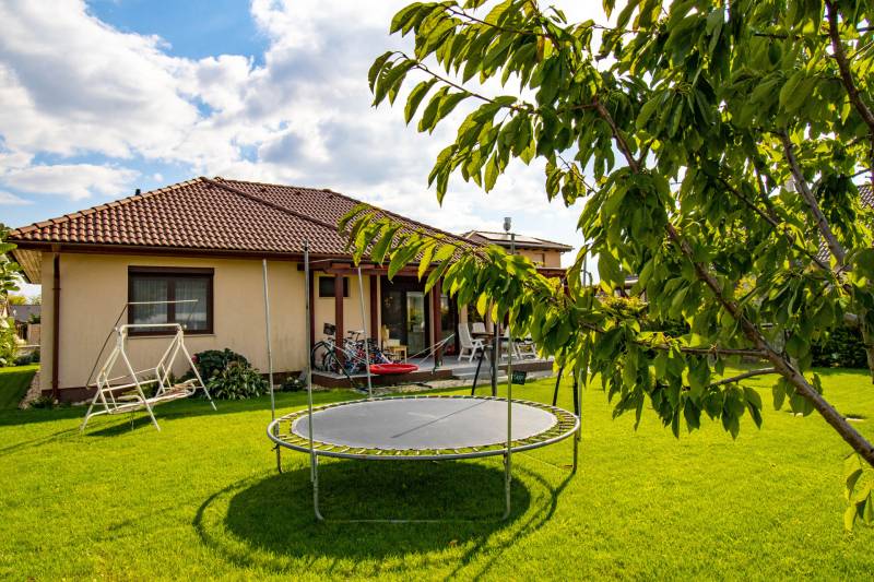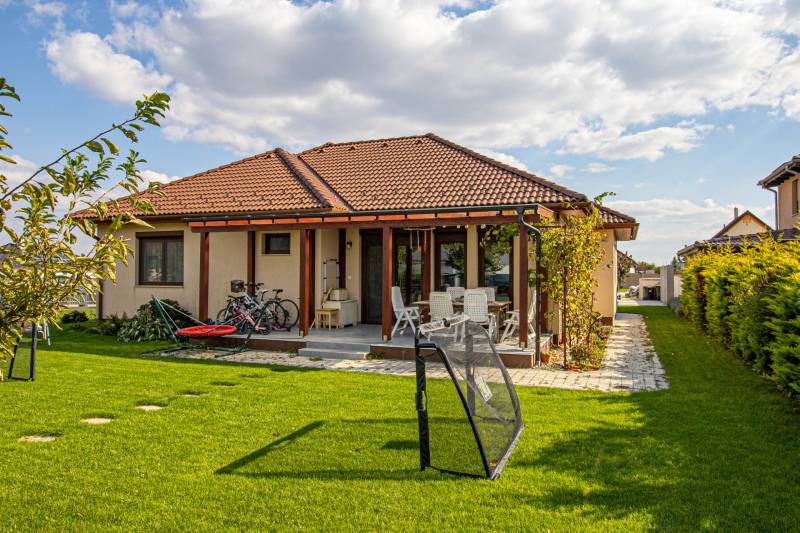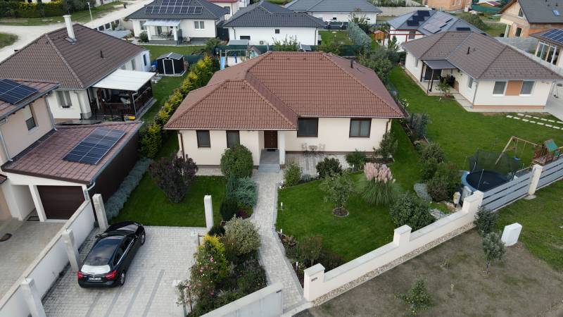 Soprontól mindössze néhány kilométerre, Harka egyik csendes utcájában kerül eladásra ez a 2018-ben épült, 120 m² lakóterű, földszintes családi ház, 890 m²-es, szépen parkosított telken.Az ingatlan elrendezése:tágas, amerikai konyhás nappali, közvetlen kijárattal a 15 m²-es fedett teraszra, klíma előkészítésselhárom hálószobafürdőszoba tusolóval és fürdőkáddal, külön WCkamra és háztartási helyiséga padláson pedig nagy rakodótér áll rendelkezésre.A ház műszaki tartalma korszerű: háromrétegű nyílászárók, alumínium redőnyök, mindenhol szúnyogháló, valamint gázcirkó fűtés padlófűtéssel és radiátorokkal biztosítja a kellemes hőérzetet egész évben. A gondozott kertben automata öntözőrendszer, konyhakert és kerti sütögető is helyet kapott.Az otthon központi eleme a naplementébe forduló fedett terasz.A település infrastruktúrája kiváló: bölcsőde, óvoda, iskola, posta, orvosi ellátás, üzletek és éttermek egyaránt megtalálhatók. A közösségi élet aktív, rendszeres rendezvényekkel, sportolási lehetőségekkel, túraútvonalakkal. A közelben Natura 2000 terület és egy gyönyörű horgásztó kínál kikapcsolódást a természet szerelmeseinek.Ez az ingatlan ideális választás azok számára, akik szeretnék a nyugodt, természetközeli életet élvezni, ugyanakkor Sopron közelségét és az osztrák határ gyors elérhetőségét is fontosnak tartják.Várom hívását!Hitelre van szüksége?Az Otthon Centrum az ország egyik legnagyobb és legmegbízhatóbb hitelközvetítőjeként, teljes körű és díjmentes hitelügyintézéssel, biztosításkötéssel áll rendelkezésére!Kérje személyre szabott ajánlatunkat Kollégáinktól!
