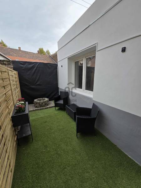 Újpest központjához közel eladóvá vált egy:- TELJES KÖRŰEN FELÚJÍTOTT (VEZETÉKEK, NYÍLÁSZÁRÓK, BURKOLATOK, TETŐ STB.)- KERTKAPCSOLATOS (19 NM)- 69 NM ALAPTERÜLETŰ- NAPPALI + 2 HÁLÓSházrész. Az ingatlan egy csendes mellékutcában található Újpest központjához közel. Néhány perces séta távolságra elérhetők a tömegközlekedési eszközök (busz, metró, villamos), újpesti piac, boltok stb. Az ingatlan fűtéséről gázkonvektor és hűtő-fűtő klíma gondoskodik.A telken 2 épületben 3 lakóegység található, az ingatlan osztatlan közös tulajdon, ez egyes lakrészek és a hozzájuk tartozó telek kizárólagos használati jogát ügyvédi használati megállapodás rögzíti. Az épületek az ingatlannyilvántartási térképmásolaton megfelelően fel vannak tüntetve, így a tárgyi ingatlan banki finanszírozással is megvásárolható.A kertben víz vételi lehetőség van és kültéri konnektort is felszereltek. Az új tulajdonosnak lehetősége van a földszinti hálószoba feletti lapostetőn egy tetőterasz kialakítására, akár úgy, hogy a tetőtéri szobából kijáratot nyit, akár a kertből felvezető külső lépcső megépítésével. Iá.: 84 M Ft
