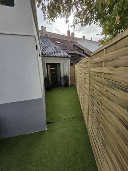 Újpest központjához közel eladóvá vált egy:- TELJES KÖRŰEN FELÚJÍTOTT (VEZETÉKEK, NYÍLÁSZÁRÓK, BURKOLATOK, TETŐ STB.)- KERTKAPCSOLATOS- 69 NM ALAPTERÜLETŰ- NAPPALI + 2 HÁLÓSházrész. Az ingatlan egy csendes mellékutcában található Újpest központjához közel. Néhány perces séta távolságra elérhetők a tömegközlekedési eszközök (busz, metró, villamos), újpesti piac, boltok stb. Az ingatlan fűtéséről gázkonvektor és hűtő-fűtő klíma gondoskodik.A telken 2 épületben 3 lakóegység található, az ingatlan osztatlan közös tulajdon, ez egyes lakrészek és a hozzájuk tartozó telek kizárólagos használati jogát ügyvédi használati megállapodás rögzíti. Az épületek az ingatlannyilvántartási térképmásolaton megfelelően fel vannak tüntetve, így a tárgyi ingatlan banki finanszírozással is megvásárolható.A kertben víz vételi lehetőség van és kültéri konnektort is felszereltek. Az új tulajdonosnak lehetősége van a földszinti hálószoba feletti lapostetőn egy tetőterasz kialakítására, akár úgy, hogy a tetőtéri szobából kijáratot nyit, akár a kertből felvezető külső lépcső megépítésével. Iá.: 84 M Ft