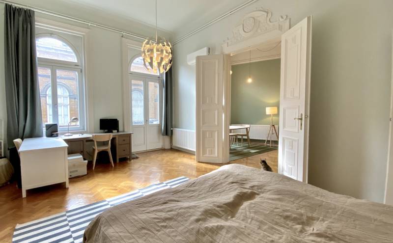 Budapest VII. kerületének szívében, a Kertész utcában található ez a kiváló állapotú, világos lakás, amely a belváros rajongók minden igényét kielégíti. A műszakilag és esztétikailag is felújított, nagypolgári stílusú ingatlan alapterülete 83 négyzetméter, és két tágas szobával rendelkezik, amelyeket a nagy belmagasság és a napfényes atmoszféra tesz még vonzóbbá. A gépesített konyhával rendelkező erkélyes lakás Belső Erzsébetváros egyik csendes utcájában helyezkedik el, ahol a központi elhelyezkedés előnyeit maximálisan kihasználhatja.