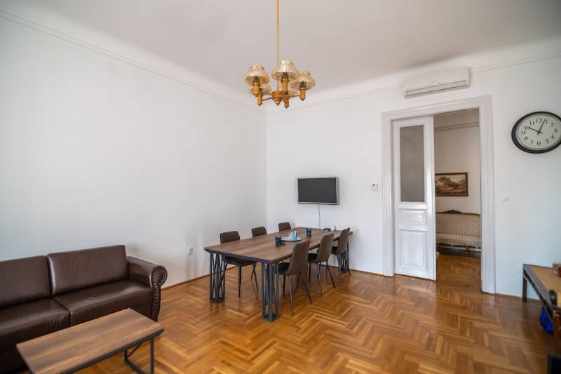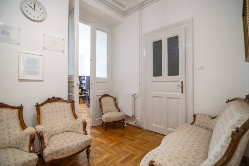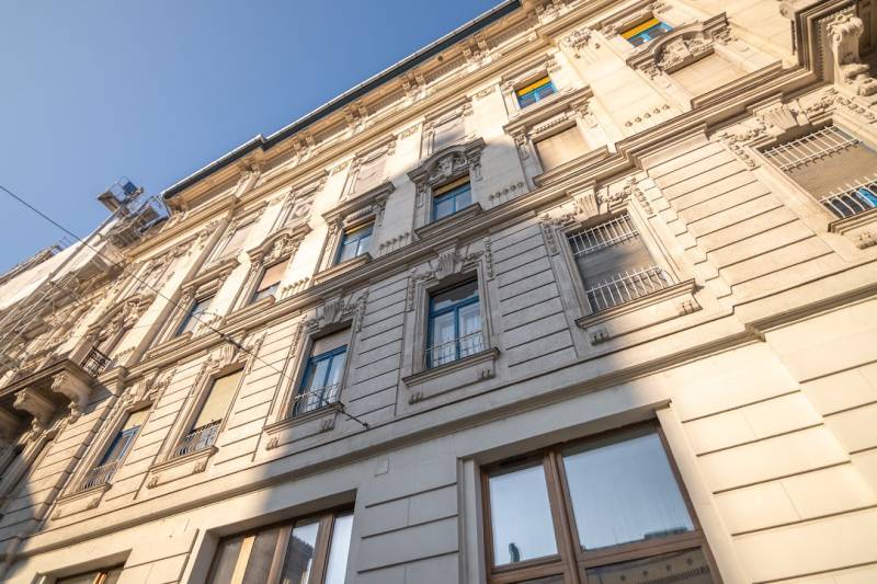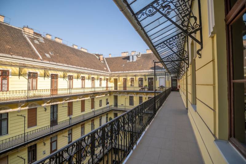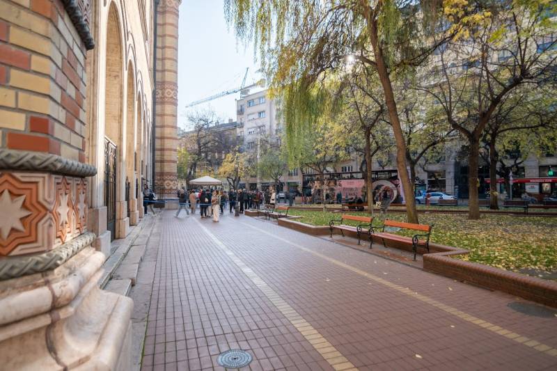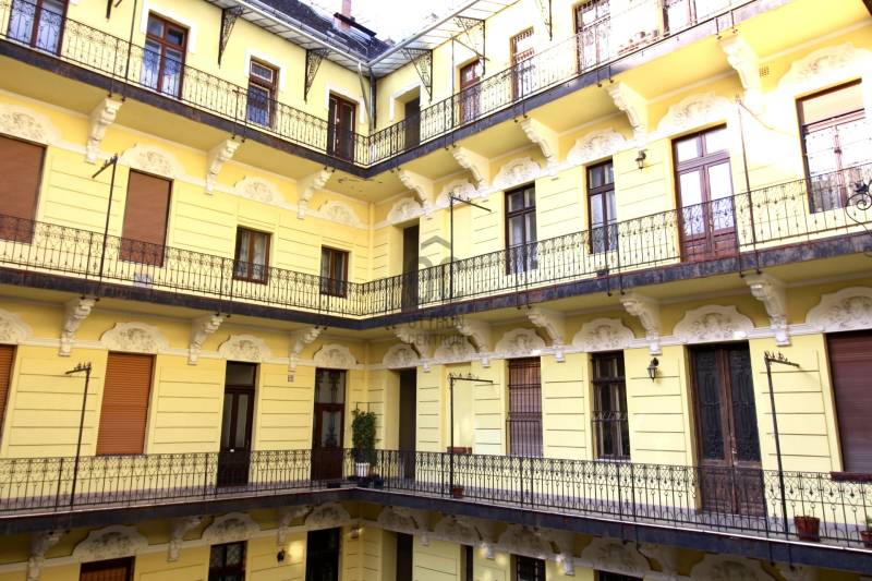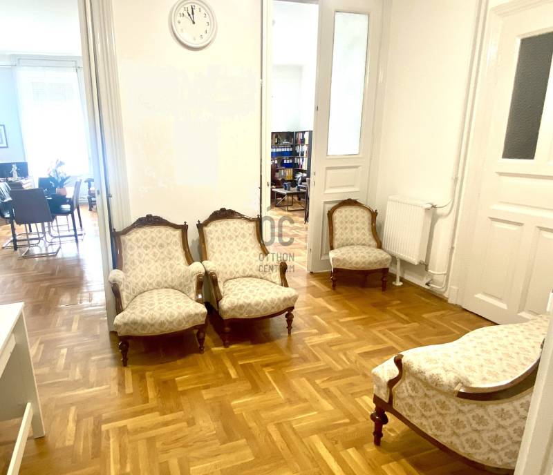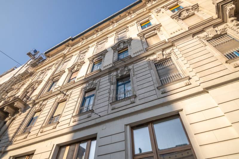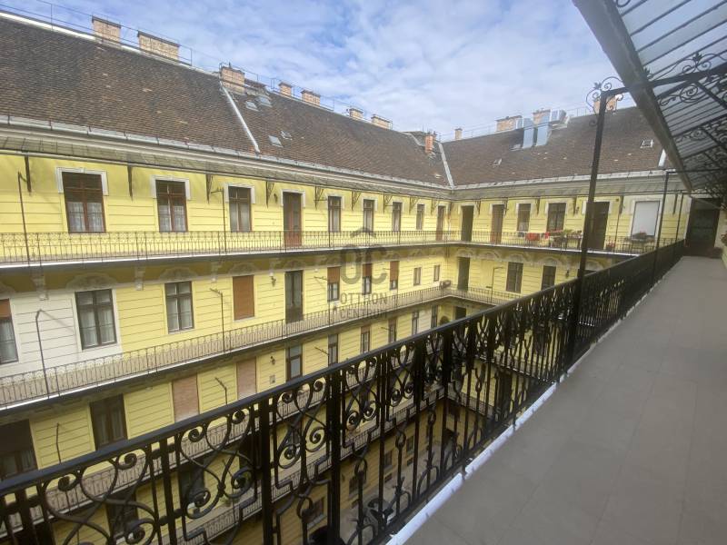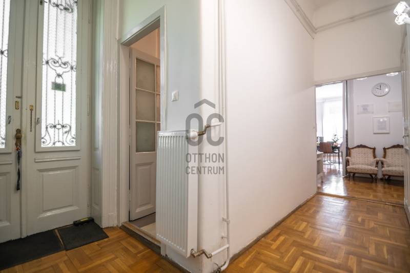 A nagyon szépen felújított 4. emeletes lakóház Hubert József tervei alapján épült 1898-ban.Az épületnek nemcsak a külső homlokzata impozáns, de belső udvari homlokzata is nagyon látványos. Az igényesen rendbe hozott épület a világörökség részét képezi, és közvetlen a világhírű Zsinagóga szomszédságában található.A lakás az épület 4.emeletén helyezkedik el. A liftből kilépve pár lépés után érjük el a lakás bejáratát. Addig is gyönyörködhetünk a belső udvar szépségében.A lakás 111nm-es ,hal+ 2 külön álló parkettás szobák, tágas előtér ahol jellenleg váróterem lett kialakítva, mert ügyvédi irodaként funkcionál. A szobák világossak és napfényesek, déli tájolásuknak köszönhetően.A szobákból egyedülálló kilátás nyílik a Zsinagógára.A ház folyamatos felújításokon esett át:2006-ban műszaki: villany- víz vezetékek és óra cserék2011-ben teljes tetőcsere, homlokzat, folyosó, lift, bejárati ajtóA ház rendjéről és tisztaságáról helyben lakó házfelügyelő gondoskodik.Lakás 2021- ben műszakilag teljes felújítást kapottFelújítások:- villany- víz- gáz vezetékek- mind a 3 óra ki lett cserélve- hűtő- fűtő klíma be lett szerelveLakás jellemzői:- téglaépítésű- belmagassága: 3.65m- 4. emelet/ lift van/- 111 nm- gázcirkó fűtés- + cserépkályha- hűtő- fűtő klíma- hal+ 2szoba- cserélt műanyag nyílászárok- 36-39nm amiből a nagyobb szobából+ 1 szoba leválasztható, mert dupla ablakos, és megosztható- konyha- előszoba- fürdőszoba+ káddal+ mosdó+ Wc- wc+ mosdó- kamra- korszerűsített lift- 10nm-es saját tároló- távirányítós kapu- jogfolytonosággal 1 parkoló tovább bérelhető havi 5000Ft-ért- közösköltség: 30.000Ft amiben a ház felújítási alap is benne vanA ház a belváros szívében, közvetlen a nemzetközi hírű Zsinagóga mellett található. Budapest városképének meghatározó épülete. Jellemző a környéken található épületekre, hogy neves építészek tervei alapján épültek és nagypolgári lakások sora található bennük.A környéken üzletek, éttermek, szórakozó helyek, bevásárlási lehetőséget biztosító üzletek sora található. De színház, mozi, bank és egyéb intézmények is bőségesen találhatók.Az utcában közlekedik a 74-es troli. De pár percre a háztól felszállhatunk a 2-es, 3-as metróra, a 47-es, 49-es villamosokra és a 7-es busz is a közelben jár. Egyszóval innen bárhová könnyen eljutunk tömegközlekedési eszközökkel.