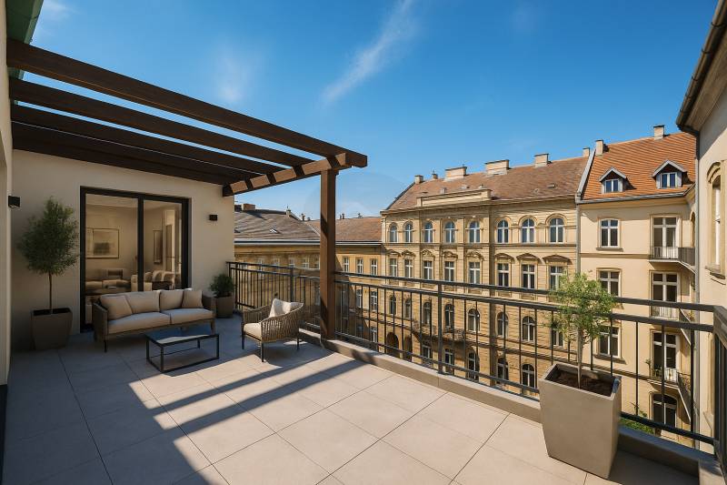 Eladásra kínáljuk Budapest II. kerületében, a Frankel Leó úton található, engedéllyel rendelkező tetőtéri lakásprojektet, amely fejlesztők és befektetők számára kivételes lehetőség.A projekt egy 117 m²-es tetőszinti ingatlan, amelyre a rendeltetésmódosítás lakásra már jogerősen engedélyezett. Az engedély tartalmazza a nyílászárók, a hőszivattyús, gázmentes gépészeti rendszer, valamint a belső elrendezés részletes terveit. A dokumentációhoz mellékelve elérhető a lift kialakításának terve is, amely a társasházi hozzáférést korszerűsíti.A tetőszerkezet adottságai alapján egy külső és két belső tetőterasz is kialakítható, amelyek exkluzív, napfényes kültéri életteret biztosítanak.A lakás 5,5 méteres belmagassága lenyűgöző térérzetet és különleges építészeti karaktert kölcsönöz a jövőbeli otthonnak.Főbb jellemzők:jogerős engedély a rendeltetésmódosításra és az építési munkák megkezdésére5,5 méteres belmagasságkorszerű, energiahatékony hőszivattyús fűtési rendszer, földgáz nélküllift kialakítására vonatkozó terv mellékelve1 külső és 2 belső tetőterasz kialakíthatóa kivitelezés azonnal megkezdhetőkiemelt lokáció: Frankel Leó út – Rózsadomb – Margit híd – Duna-part – Lukács FürdőAlapterület: 117 m²Tervezett nettó lakótér: kb. 113 m²Belmagasság: 5,5 mRendeltetés: lakás (engedéllyel)Teraszlehetőség: 1 külső + 2 belső tetőteraszParkolás: megváltással biztosítottLift: engedélyezett tervek rendelkezésre állnakEz a projekt ritka fejlesztési lehetőség: a térérzet, a teraszok és az energetikai modernitás kombinációja egyedülálló a II. kerületben. Ideális választás értéknövelő beruházásra, prémium lakásfejlesztésre vagy továbbértékesítésre.A látványtervek AI által generált képek.