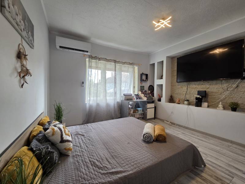 „Egy csendes utcában születtem… Viszneken.”Irányár: 16.580.808 Ft – egy hónapon belül birtokbavehető, tehermentes vagyokAz évek alatt sokat változtam – belülről megújultam, szépültem, és most készen állok arra, hogy új lakóimat fogadjam.Falaim vályogból és téglából készültek, új részeimet pedig Ytongból építették, hogy erősebb és korszerűbb legyek.A régi fagerendás, stukatúros mennyezetem megmaradt, mert szeretem, ha van múltam – de kaptam álmennyezetet is, hogy modern legyek.Belül új ruhát öltöttem: a falaim gipszkartont kaptak, a víz- és villanyhálózatom teljesen megújult.A melegemről három erős klíma gondoskodik – mind 8 kW-os, és egyetlen kültéri egységgel működnek.Télen is kellemes meleg, nyáron pedig hűvös otthon tudok lenni.Ablakaim részben műanyagból készültek, hogy a fényt és a nyugalmat beengedjék, de a hideget kint tartsák.Bennem két különnyíló utcafronti szoba, egy központi nappali, világos étkezős konyha és egy kádas, kétmosdós fürdő vár.A nappaliból nyílik a gardróbom – és egy műhelyrészleg is, ahol a kreatív lelkek szabadon alkothatnak, illetve további szobaként, gyerekszobaként is funkcionálhatnak.A hátam mögött ott a 19 négyzetméteres teraszom, stabil betonalappal és fedett kerti party sátorral – ott születhetnek majd az új emlékek.Készpénzes vevőimet várom, akik értékelik, hogy mennyi szeretettel újítottak meg.Nem vagyok új, de élettel teli – és készen állok, hogy új történet kezdődjön bennem.Gyere, nézz meg, és ha megszólítalak – tudni fogod, hogy hazaértél.Amennyiben forrásbevonásra van szükség a vásárláshoz, egyedülálló megoldásokkal támogatjuk döntésed.Intézd hitelfelvételed az Otthon Centrum szakképzett hitelreferensei segítségével.CSOK,- Falusi CSOK,- személyi kölcsön –, Babaváró hitel,- jelzáloghitel-18 bank,- egyedi, személyre szabott- bankfüggetlenAjánlataink, NEM CSAK a nálunk vásárolt ingatlanokra vonatkoznak.Díjmentes hitelügyintézés!!Adás-vétel esetén ügyvédünk rendelkezésedre áll a szerződéskötés teljes folyamatában, hogy minden gördülékenyen és biztonságosan történjen. #EladóHáz #VisznekIngatlan #FelújítottHáz #Klímásfűtés #KlímásHáz #IngatlanKözvetítés #OtthonCentrum #CsaládiOtthon #HázEladó #Ingatlan #ÚjOtthon #NyugodtKörnyék