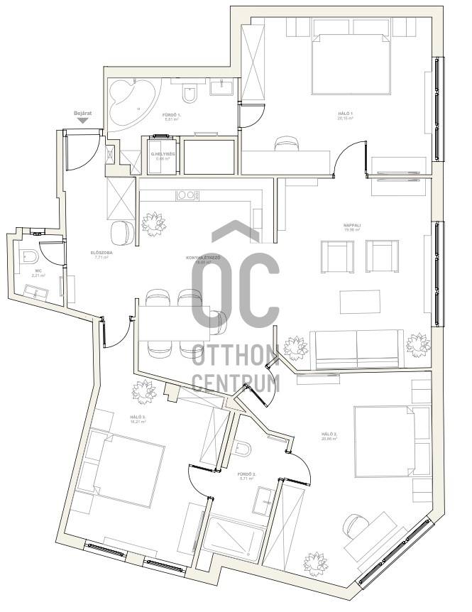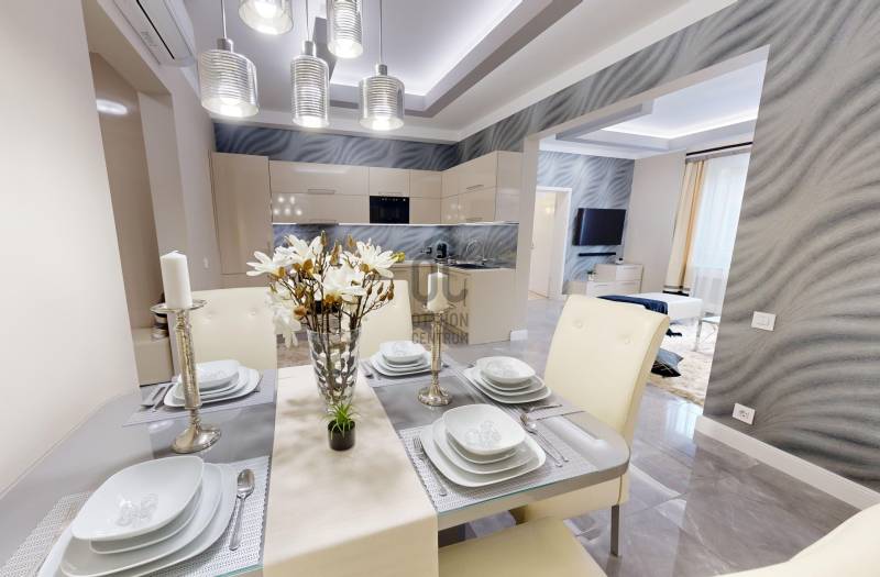 RÖVID ÖSSZEFOGLALÓBudapest V. kerületének szívében, a megújult Bástya Park mellett, kiadó egy 117 m²-es, teljes körűen felújított, luxus színvonalú, nappali + 3 hálószobás saroklakás. A Bauhaus stílusú, patinás társasház 3. emeletén található otthon kivételes panorámát, elegáns megjelenést és modern városi életérzést kínál. Minden részletét elismert belsőépítész tervezte, prémium minőségű anyagokkal és egyedileg gyártott bútorokkal. BUDAPEST TÖRTÉNELMI KÖZPONTJÁBANA lokáció a belváros egyik legértékesebb része:• Egyetem tér, Váci utca, Károlyi-kert és Duna-part 3 perc sétára található. • Kávézók, éttermek, galériák, iskolák és presztízs intézmények közvetlen közelben.• A Bástya Park – UNESCO világörökségi környezet – zöldfelületei, játszótere és pihenőparkja a lakás ablakaiból is élvezhetők. PATINÁS BAUHAUS TÁRSASHÁZAz épület 1937 és 1941 között épült Mikle György tervei alapján, ikonikus Bauhaus stílusban. Letisztult homlokzat, rendezett közös terek és kulturált lakóközösség jellemzi. A társasház megőrizte eredeti építészeti értékeit, miközben műszakilag korszerű, tiszta és jól karbantartott.BELSŐÉPÍTÉSZET – MODERN LUXUS, FUNKCIONÁLIS TEREKA lakás teljes szerkezeti és műszaki felújításon esett át, mely során kizárólag prémium anyagok kerültek beépítésre:• Vadonatúj nyílászárók, elektromos redőnyök és extra hő-hangszigetelés. • Grohe csaptelepek, luxus szaniterek, spanyol gres burkolatok, francia tapéták. • Beépített, egyedileg tervezett magasfényű bútorok.• Teljesen új gépészeti rendszer, riasztó, klíma, modern világítástechnika. TÉRKIALAKÍTÁS ÉS ÉLETMÍNŐSÉG• Elrendezés: nappali + 3 hálószoba, 2 fürdőszoba, vendég-WC. • Konyha-étkező-nappali egy légterű, központi élettér – luxus gépekkel és design bútorokkal. • Hálószobákban gardrób, egyedi íróasztalok, minőségi fa burkolatok.• A főhálószobához privát wellness-fürdő (hidromasszázskád, exkluzív szaniterek) tartozik. TECHNOLÓGIA & FELSZERELTSÉG✔ Házközponti fűtés + hűtő-fűtő klíma✔ Riasztórendszer, elektromos redőnyök✔ Modern konyhai gépek: indukciós főzőlap, sütő, mosogatógép, páraelszívó✔ Rejtett LED világítás, fényerőszabályozható rendszer✔ Teljes bútorozottság, gépesítve költözhetőKINEK AJÁNLJUK?Az ingatlan tökéletes választás:• diplomatáknak, külföldi szakembereknek, vezető beosztású bérlőknek• exkluzív belvárosi életérzést keresőknek• akik a történelem és a luxus találkozását értékelik