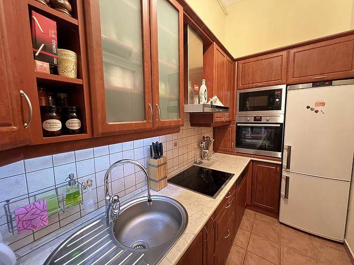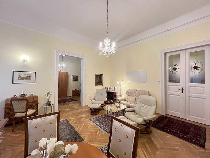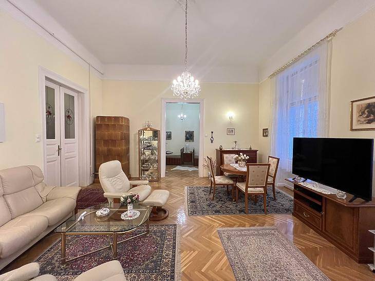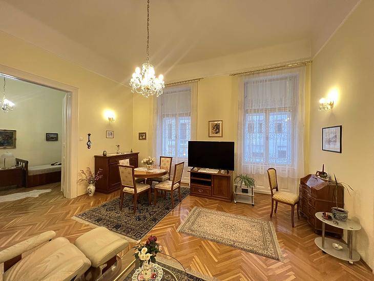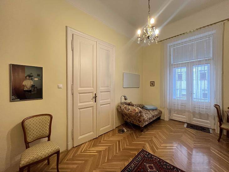 Eladó a 7. kerületben, a Vörösmarty utcában egy 88 m2-es, 3 m2-es erkéllyel rendelkező, utcai nézetű, igényesen felújított nagypolgári lakás.A társasház és az ingatlan egyaránt teljeskörű felújításon esett át, amely során az eredeti fa nyílászárók és a fa parketta is újjá lettek varázsolva. A modern infrapaneles fűtés mellett egy nemrég újraépített, gyönyörű cserépkályha is fokozza a lakás hangulatát. A felújított, eredeti beltéri ajtók megtartották a klasszikus polgári stílust, így a lakás eleganciája minden részletében érvényesül.A Vörösmarty utca a 7. kerület egyik legkeresettebb környéke, amely kiváló elhelyezkedésének és szolgáltatásainak köszönhetően vonzó mind lakhatás, mind befektetés szempontjából. A közelben számos kávézó, étterem és bolt található, a belváros közelsége miatt pedig könnyen elérhetőek a város kulturális központjai is. A kiváló közlekedési kapcsolatok - buszok, trolik és a metró - gyors eljutást biztosítanak Budapest bármely pontjára.A hirdetés tájékoztató jellegű!
