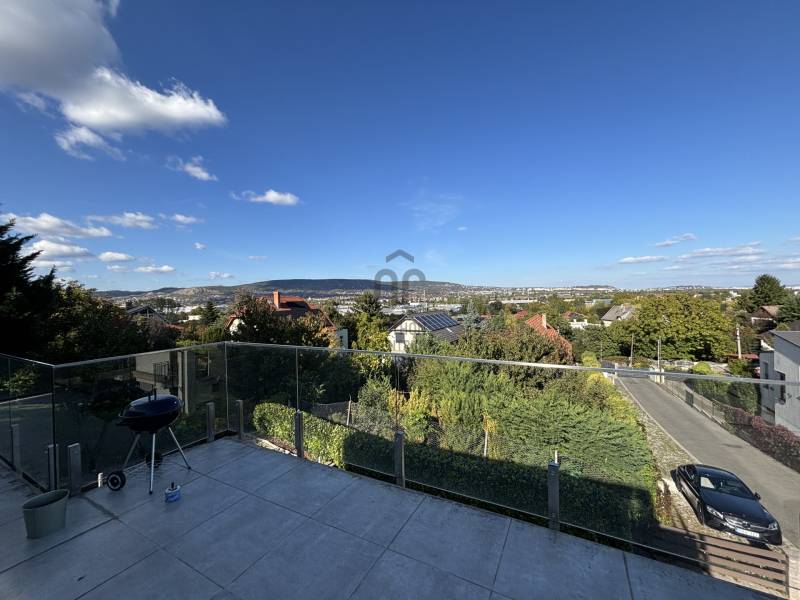 Kinek ajánlomEzt az ingatlant azoknak ajánlom, akik az otthont nem pusztán élettérnek, hanem harmóniát adó helynek tekintik.Akik szeretik, ha reggel a napfény tölti meg a szobákat, ha este a városi fényekkel a horizonton pihennek meg, és fontos számukra a nyugalom, a panoráma és a minőség.Ideális választás családoknak, pároknak, vagy akár elfoglalt szakembereknek, akik egy rendezett, zöldövezeti környezetben szeretnének élni — kompromisszumok nélkül.ElhelyezkedésAz ingatlan Budaörs egyik legkedveltebb, dombos részén található, zöldövezeti, mégis kiválóan megközelíthető környezetben.A városközpont, valamint a legfontosabb bevásárlási lehetőségek – IKEA, Auchan, Tesco, Decathlon, Rossmann, gyógyszertárak – mind néhány perces autóútra elérhetők.Több iskola, óvoda és sportlétesítmény is a közelben található, a tömegközlekedés pedig kényelmesen használható: helyi buszjáratok biztosítanak kapcsolatot a budaörsi központ és Budapest irányába.Az M1–M7 autópályák csomópontja mindössze pár percre található.A környék hangulataA budaörsi dombvidék egyik legcsendesebb és legápoltabb része.A környék atmoszférája nyugalmat és természetközelséget sugároz, miközben modern, igényes családi házak és új építésű társasházak veszik körül.A környék ideális választás azoknak, akik szeretik a reggeli sétákat, a friss levegőt, a csendes esték békéjét, és akik számára fontos, hogy a panoráma valóban elvehetetlen maradjon.Az ingatlanrólA lakás egy kétlakásos társasház felső szintjén helyezkedik el – így teljes intimitást és privát életteret biztosít.A ház elhelyezkedéséből adódóan 180 fokos, körpanorámás kilátás tárul elénk, amely a nappaliból, a teraszról és a kertből is élvezhető.A lakás különlegessége a 33 m²-es, üvegkorlattal ellátott panorámaterasz, ahol minden napszakban más arcát mutatja a kilátás.A tágas, egybenyitott nappali–étkező–konyha térben hatalmas üvegfelületek engedik be a fényt, így a lakás egész nap napfényben úszik.A három hálószoba közül a legnagyobb közvetlen kertkapcsolattal rendelkezik.A házhoz privát úton lehet feljutni, ami biztonságot és nyugalmat ad, a környezet pedig rendezett és igényes.Műszaki felszereltségÉpítés éve: 2018Fa nyílászárók, prémium hőszigetelésselHőszivattyús hűtés–fűtés rendszer, alacsony fenntartási költségekkelBeépített konyhabútor és beépített gardróbszekrényekFrissen tisztított, üres állapot, azonnal költözhetőModern, igényes kivitelezés, időtálló anyaghasználatParkolás és megközelítésA lakáshoz tartozik egy 30 m²-es, zárható, privát garázs, amely kizárólag az ingatlan tulajdonosának használatában van.Ezen felül a telken belül további 2–3 felszíni beállóhely is rendelkezésre áll.A ház privát úton közelíthető meg, ami exkluzivitást és biztonságot nyújt a lakók számára.Ez az otthon egyszerre sugároz letisztultságot, harmóniát és eleganciát – egy hely, ahol minden részlet a kényelmet és a nyugalmat szolgálja.Ha felkeltette az érdeklődését, keressen bizalommal, örömmel mutatom be személyesen is ezt a különleges ingatlant.