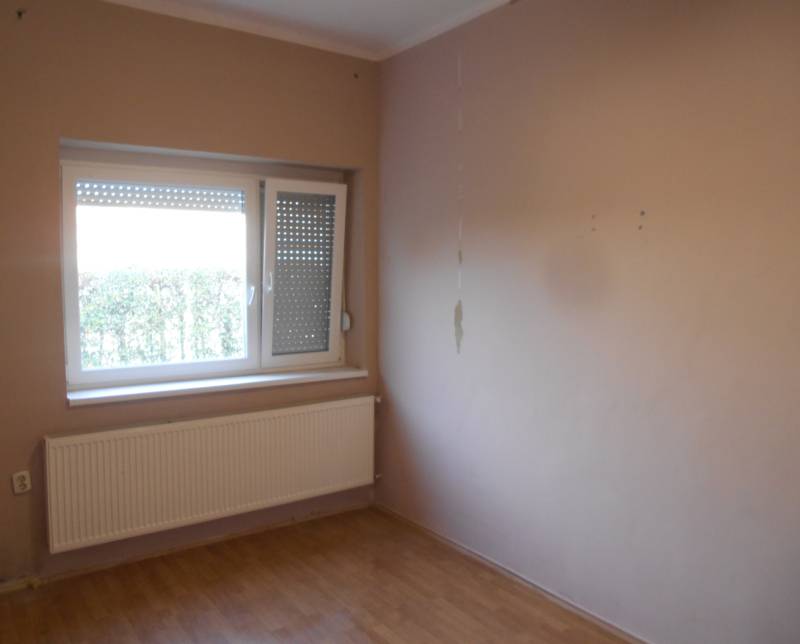 Megvételre kínálok Nyírtasson, piachoz közeli csendes mellékutcában, egy, a 60-as években vályogból épült, palával fedett családi házat 1918 nm -es, 17 méter széles telken. A részben alápincézett ingatlant szilikát falazattal bővítették, ez a rész cseréppel fedték. A felújítását már elkezdték, a bejárati ajtókat és az ablakok egy részét, már műanyagra cserélték és redőnnyel szerelték fel. A szobákat és a nappalit laminált padlóval a többi helyiséget (az előszobát, a konyha-étkezőt és a külön wc-t, fürdőszobát) járólappal burkolták. A melegről központi fűtés gondoskodik ami a tárolóban található gáz és vegyes tüzelésű kazánnal is működtethető de található a nagyobbik utcafronti szobában egy cserépkályha, továbbá a konyha-érkezőbe bevezették a klímát is. Az épület falusi CSOK -ra alkalmas.Nyírtass eladó családi házAz ingatlanról készült videó megtekinthető: http://youtu.be/ePl0oqzo8eE