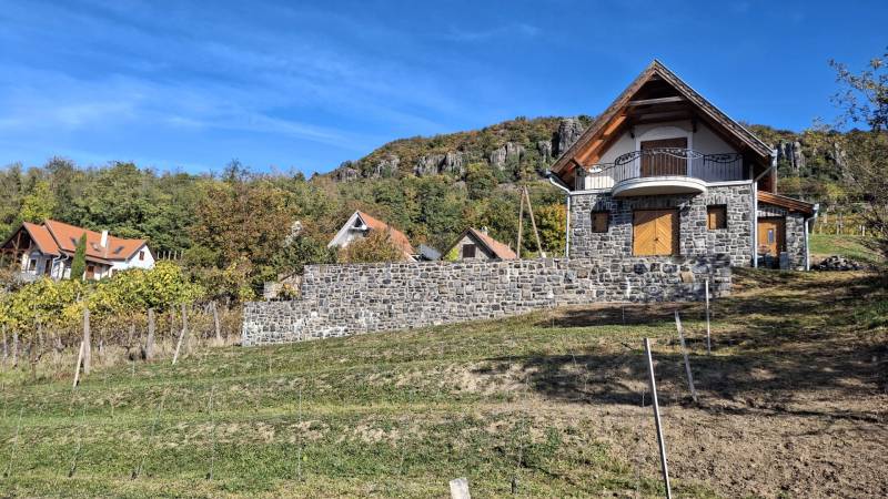 Badacsonytördemicen a Római útról megközelíthető nyaralót ajánlok figyelmébe!A hegy közepén fekvő ingatlanból gyönyörű panoráma tárul elénk a Balatonra, a hegy bazaltorgonáira és Szigligetre.Kiépített út vezet a házhoz, ahol több autó számára kialakított parkoló biztosított.KIEMELT MEGBÍZÁS, CSAK AZ OTTHON CENTRUM KÍNÁLATÁBAN!A lépcsőzetes kialakítású telek nem túl nagy mérete ( 860 m2 ) optimális, gondozása sok időt nem igényel, szőlővel betelepített.A telek minden pontjáról megcsillan a Balaton víztükre, de a ház háta mögött a hegy is pazar látképet ad.A környező pár szomszéd után pihentető sétára indulhatunk az erdőbe vagy a hegytetőre.A ház falazata tégla, bazaltkő támfalakkal kiegészülve.A tető hódfarkú héjazatot kapott, szigetelt.A pinceszinten az előtér, kamra és bortároló kialakítás külön lakrésszé változtatható.Az emeleten a nagy légterű nappali- konyha és fürdőszoba befejezésre vár.A nyílászárók fenyőből készültek, dió lazúrral.A villany bekötésre került, a szennyvízhez az emésztő biztosított.Víz jelenleg nincsen, ciszternával vagy kútfúrással megoldható.Gazdasági épület, kifüggesztés köteles.A Badacsony a Tapolcai- medence legmagasabb, ikonikus hegye.A szőlőtermesztésről, borozóiról híres, kedvelt üdülőhely.A közelben több strand és étterem várja a vendégeket.Ha kérdése merült fel vagy szeretne időpontot egyeztetni, várom megtisztelő hívását!