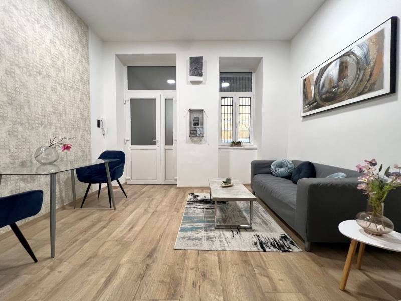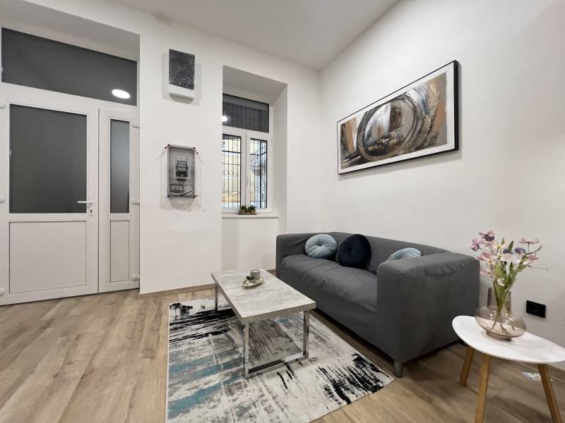 OTTHON START HITEL NEM VEHETŐ IGÉNYBE A VÁSÁRLÁSNÁLMegvételre kínálunk egy 46 m2-es, teljesen felújított amerikai konyhás nappali+1 hálószobás lakást. Az amerikai konyhás nappaliból nyílik a zuhanyzós fürdőszoba és a tágas 23nm-es hálószoba.A felújításról:A felújítás során a lakás mind gépészetileg, mind pedig esztétikailag fel lett újítva.A teljes villanyhálózat felújítása is megtörtént. A fűtésről minden helyiségben 3.5 kW-os Gree fűtésre optimalizált hűtő-fűtő klíma gondoskodik. A külső és a belső nyílászárók szintén cserélve lettek. Az ablakok háromrétegű hő-, és hangszigeteltek. A bejárati ajtó többponton záródó, masszív biztonsági ajtó. A beltéri nyílászárók tartós, karcálló CPL üvegbetétes ajtók. A hidegburkolatok szintén cserélve lettek. I. osztályú kerámia padló és falburkolat került beépítésre. Egyedi gyártású, beépített design konyhabútor gépesítve BOSCH kerámia főzőlappal, beépített elektromos BOSCH sütővel, SAMSUNG páraelszívóval, amelyek szintén a vételár részét képezik. A melegburkolat magas kopásállóságú, vízálló laminált parketta. A lakás minden ablaka elektromos alumínium redőnnyel van felszerelve.A lakás rugalmasan megtekinthető, a hét minden napján, előre egyeztetett időpontban. További felmerülő kérdéseivel forduljon hozzánk bizalommal.Ferge Imre