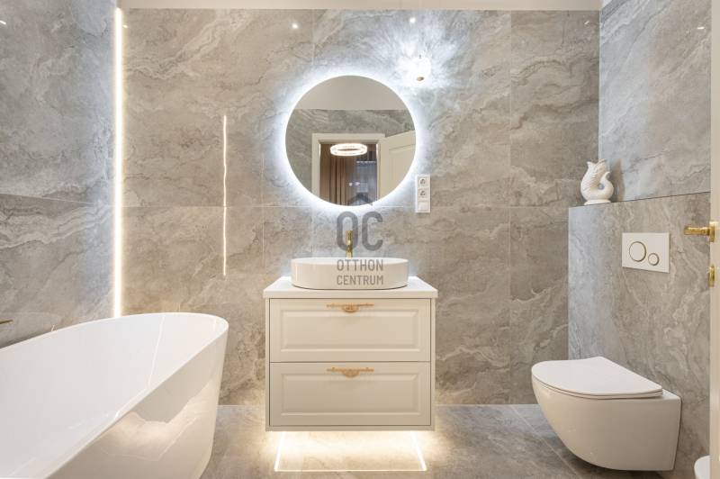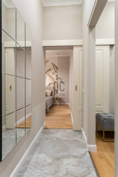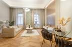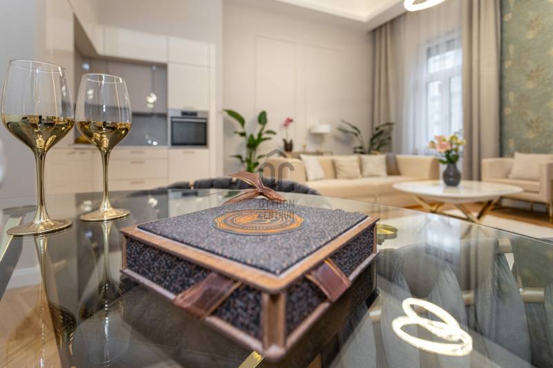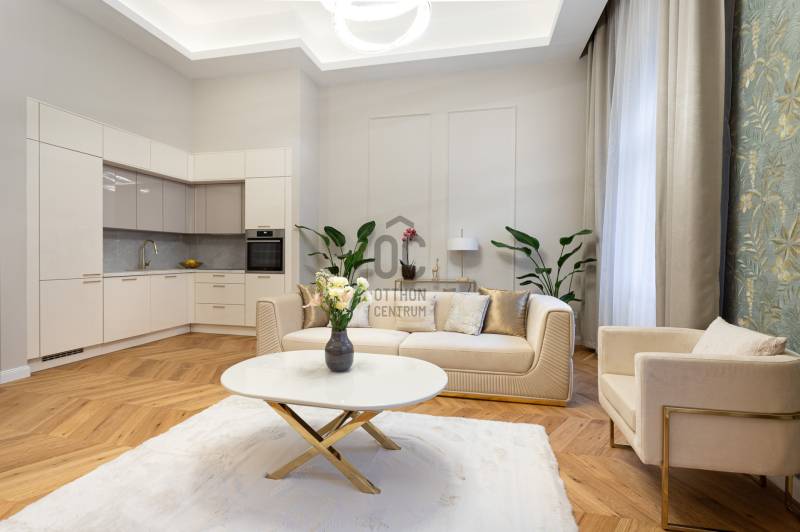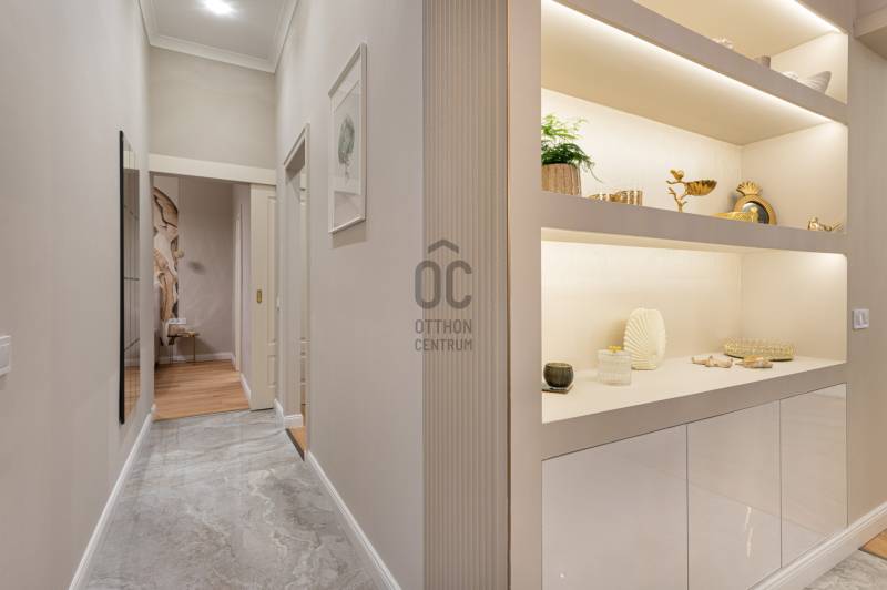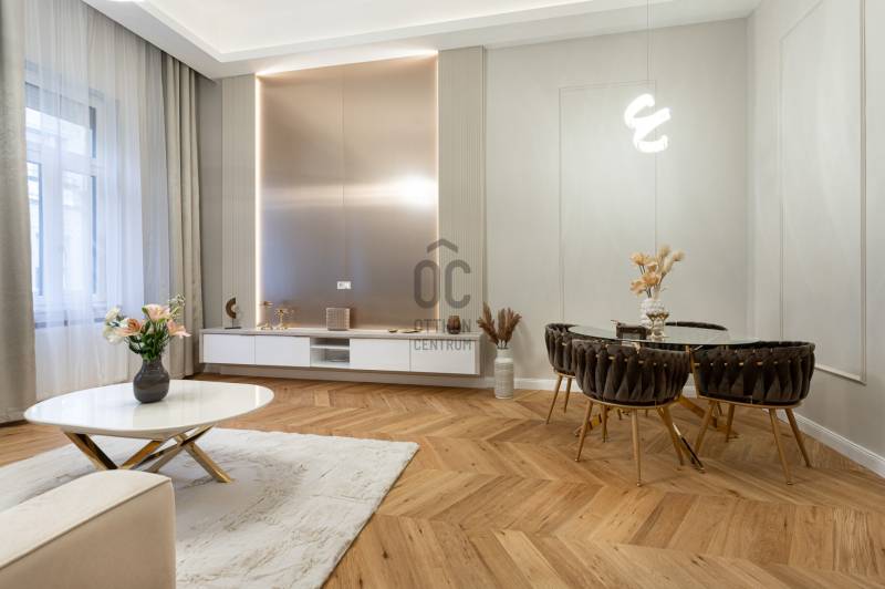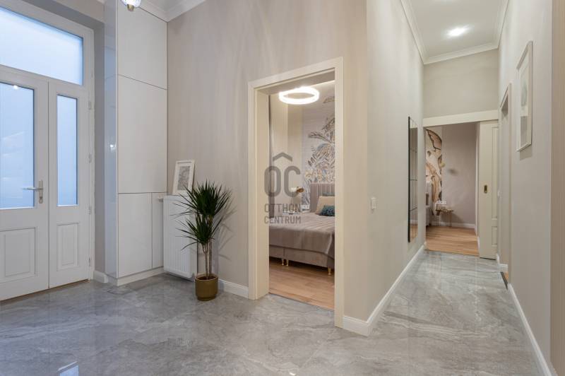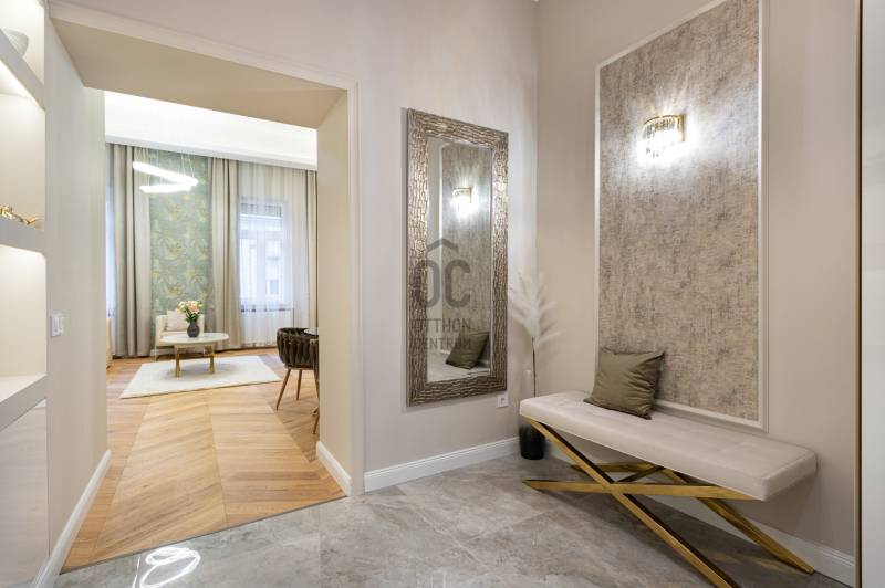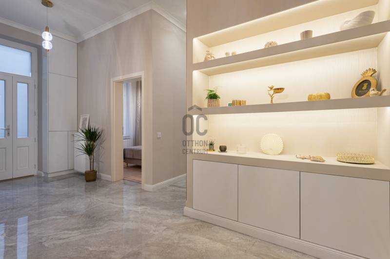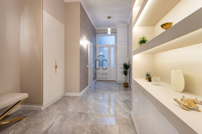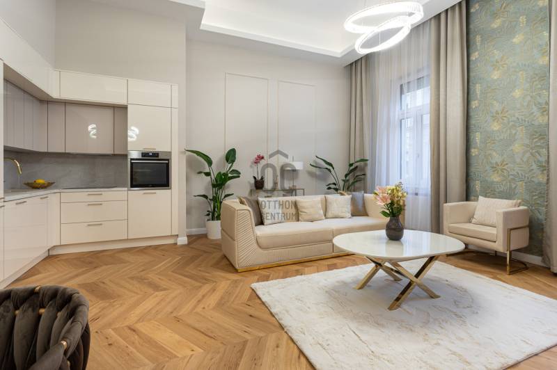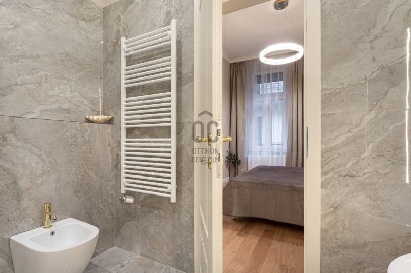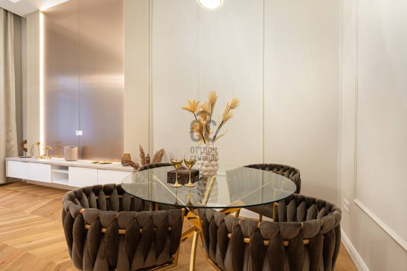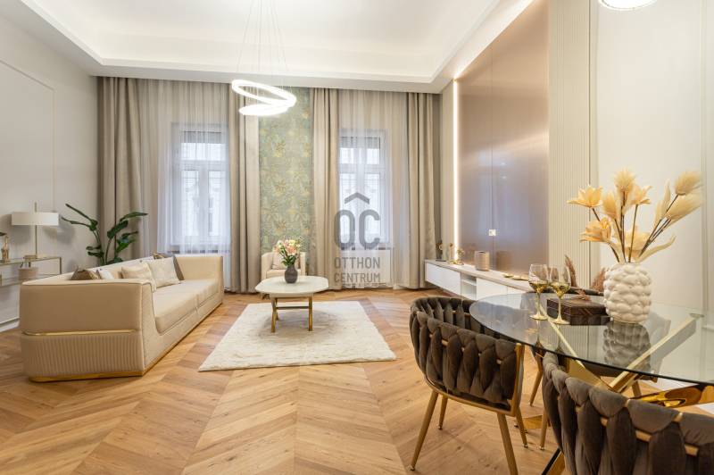 V. kerület Szemere utcában, 86 m2-es nappali + 2 hálószobás, gardróbos, duplakomfortos, 3. emeleti, utcai nézetű, luxuslakás eladó. Az ingatlan prémium minőségű felújításon esett át, melynek során a legkiválóbb minőségű anyagokat használták fel, a lakás minden részletében az eleganciát tükrözi.Az ingatlan amerikai konyhás nappalival rendelkezik, mindkét hálószobához külön fürdőszoba tartozik: a fő hálószobához egy elegáns káddal, WC-vel és bidével felszerelt fürdőszoba kapcsolódik, míg a második szobához egy zuhanyzós fürdő. Az ingatlan prémium minőségű bútorokkal és gépekkel együtt eladó, így az új tulajdonos azonnal beköltözhet egy teljesen felszerelt, exkluzív otthonba.A teljes körű felújítás során megtörtént a víz- és villanyvezetékek, valamint a fűtéscsövek, radiátorok cseréje. Designer csillárok, beépített szekrények, minőségi szaniterek és prémium burkolatok kerültek beszerelésre. A 4,3 méteres belmagasság igazán légies, tágas hangulatot ad a lakásnak, a chevron mintás tölgyfa parketta eleganciát és egyediséget. A konyha teljesen gépesített, AEG márkájú készülékekkel felszerelt: mosogatógép, hűtő fagyasztóval, sütő, mikró, főzőlap, páraelszívó és mosógép is rendelkezésre áll. A lakás légkondicionált.A társasház kivül, belül kiváló állapotú, az emeletre jutást 2 modern lift segíti. A lépcsőház függőfolyosós, a lakás a függőfolyosó végén található.A közvetlen közelben több busz- és villamosvonal elérhető, amelyek gyors és kényelmes kapcsolatot biztosítanak a város többi részével. Ez a lakás nem csak otthonként, hanem befektetésként is tökéletes választás azok számára, akik a belvárosi luxust és kényelmet keresik. Az ingatlan minden részlete a legmagasabb színvonalat képviseli, így garantáltan megfelel a legigényesebb vásárlók elvárásainak is.Jöjjön és helyezze magát kényelembe új otthonában!Várom megtisztelő hívását a hét minden napján!