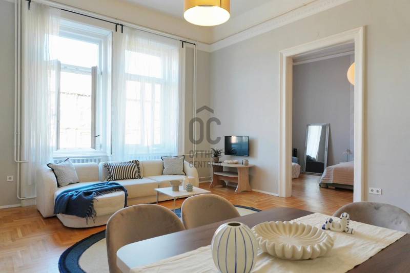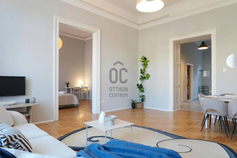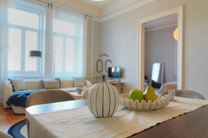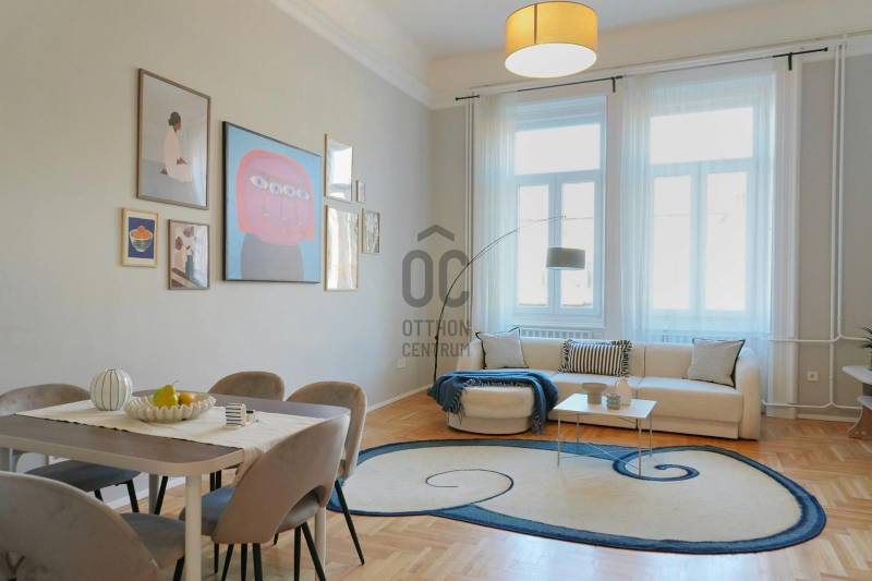 Eladásra kínálom ezt a patináns, belvárosi ház harmadik emeletén elhelyezkedő 3 szobás lakást.A 2022-ben teljeskörűen felújított, modern és elegáns lakás azonnal költözhető: a 2 hálószobás, 2 fürdőszobás otthon egy ragyogó lokációval és tágas, világos belső terével igazi gyöngyszem a főváros belsejében.A lakásról:90 nm - 3 szoba2 hálószoba -2 fürdőszobamodern, teljesen felszerelt konyha nagy nappali és háló rengeteg fénnyelharmadik emeleti elhelyezkedés ( lift van)utcai nézet, rengeteg fény2022-ben felújított, műszakilag és esztétikailag isgázfűtés -cirkónagy belmagasság - 4 méter felettműanyag ablakokHáz:1880-ban épültlifteskörfolyosós3 emeletesszép belső udvar és lépcsőházLokáció:belváros szíve - minden a közelben:Király utca, Liszt Ferenc tér, Andrássy út, Oktogon 3 perc sétára, Gozsdu udvar, Deák tér, Városliget gyalog 10 perc alattOperaház, Szent István bazilika, Hősök tere a közelbenszámtalan étterem, kávézó, bár, galériai és bolt séta távolságraKözlekedés5-10 perc sétára könnyedén találunk számtalan buszt, villamost és 3 metrót is ( M1, M2,M3), reptéri busz szintén sétányiraAz ingatlan ideális akár saját otthonnak csodás berendezése, bája és kényelme miatt, ám befektetés szempontjából is, kiváló értékállósága, praktikus elrendezése és fantasztikus lokációja miatt -akár diákoknak, akár a jelenleg is működő AirBnB kiadásban gondolkodna.Minden berendezés a vételár részét képezi. Ez az ingatlan az Otthon Centrum egyedülálló felezőcsomagjában elérhető. További részletek: http://www.oc.hu/felezocsomagMegtekintéshez kérem hívjon vagy írjon üzenetet!Ez az ingatlan a \"Felező csomag\" megbízási portfólióhoz tartozik. Részletek az Otthon Centrum weboldalán.