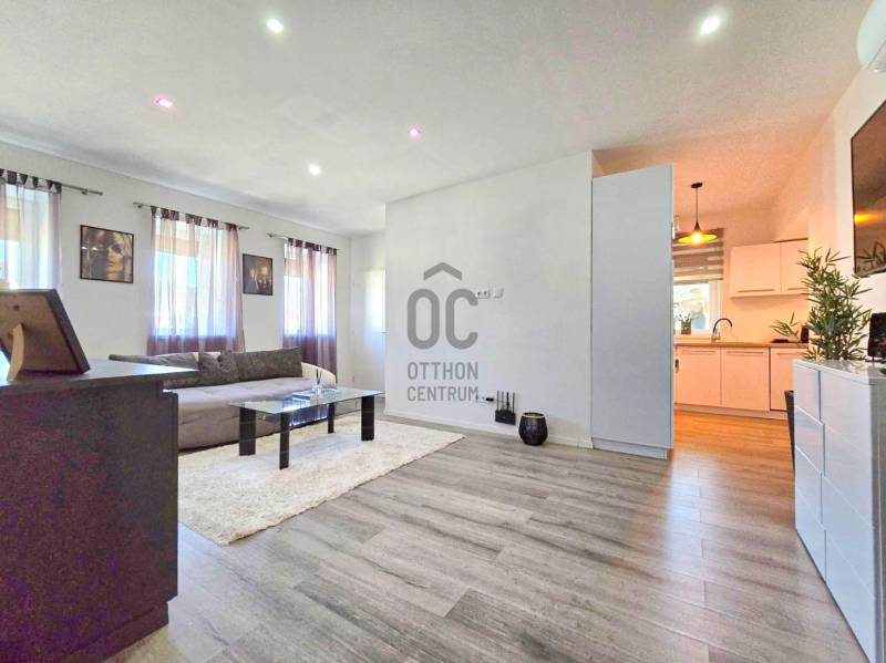 2023-ban épült, mindössze 5 lakásos társasházban kíerül eladásra a 71 m2 lakószinttel és 9,41 m2 -es erkéllyel rendelkező lakás.A lakás nappali–étkező, konyha, 2 hálószoba, fürdőszoba, háztartási helyiség és erkély elosztással rendelkezik.KIEMELKEDŐ MŰSZAKI TARTALOM38 cm-es főfalak + 15 cm-es külső hőszigetelés10 cm-es belső, páraáteresztő, de nem légáteresztő kétkomponensű hab – egyedülálló hang- és hőszigetelés3 rétegű üvegezésű nyílászárók, antracit alumínium redőnyökkel és szúnyoghálóval, elektromos előkészítésselTömör fa beltéri ajtók, acél biztonsági bejárati ajtóElektromos ujjlenyomat-olvasós beléptetésElektromos padlófűtés + hűtő-fűtő klímaOkosotthon rendszer digitális vezérlésselTOVÁBBI ELŐNYÖKÁtadáskor a lakást modern konyhával, minőségi csaptelepekkel és friss festéssel veheti birtokba.Zárt udvari parkoló, mely lakásonként minimum 3 autó számára biztosít helyetCsendes, lakóparki környezet, mégis kiváló közlekedés – buszmegálló és vasútállomás sétatávolságraEz az ingatlan a modern technológia, a biztonság és a minőségi kivitelezés találkozása.Érdeklődj telefonon, és egyeztess időpontot a megtekintésre – érdemes személyesen is megismerni!A LAKÁS KÉSZPÉNZZEL VÁSÁROLHATÓ MEG!Hitelre van szüksége?Az Otthon Centrum az ország egyik legnagyobb és legmegbízhatóbb hitelközvetítőjeként, teljes körű és díjmentes hitelügyintézéssel, biztosításkötéssel áll rendelkezésére!Kérje személyre szabott ajánlatunkat Kollégáinktól!