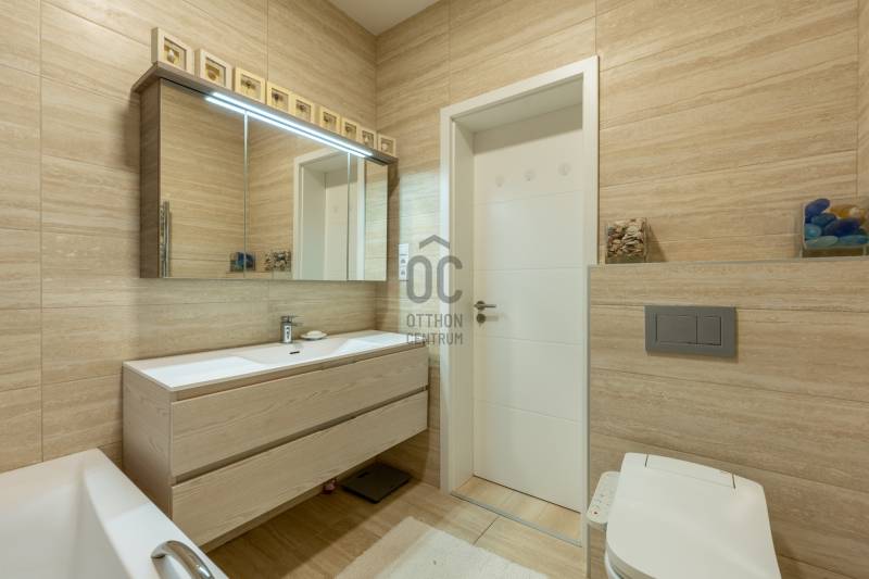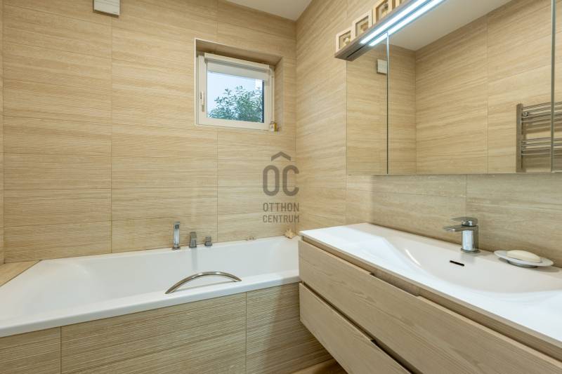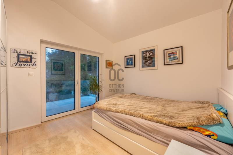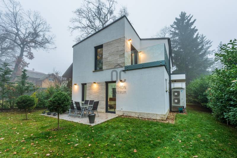 Eladásra kínálok Adyligeten, a II. kerületben egy 200 m²-es, 4 hálószobás, modern családi házat 729 m²-es telken.A ház 3 méteres belmagasságával, tágas tereivel és minőségi anyaghasználatával kiváló otthont nyújt többgyermekes családok számára is.A nappali–konyha–étkező 50 m²-es, négy különnyíló hálószoba (16 m², 12 m², 18,7 m², 17 m²) és több terasz (25,4 m², 14 m², 16,2 m², 9 m²) tartozik hozzá, amelyek közvetlen kapcsolatot biztosítanak a kerttel.A fűtésről és hűtésről Daikin hőszivattyús rendszer gondoskodik, mennyezeti fűtőszálakkal és padlófűtéssel kombinálva, geo áramról, kedvezményes tarifával.A havi átlagos energiafogyasztás rendkívül kedvező (kb. 29 000 Ft/hó), a vízfogyasztás kéthavonta kb. 10 000 Ft.A ház 15 cm-es szigetelést és ürömi mészkőburkolatot kapott.A háromrétegű nyílászárók kívül antracit színű fém, belül fehér műanyag kivitelűek, motoros zsalúziákkal ellátva.Riasztórendszer és távfelügyeleti bekötés is kiépítésre került.A belső terek természetes tölgyfa svédparkettával, a vizes helyiségek nagy méretű hidegburkolatokkal készültek.A konyhában magasfényű világos bútorok és beépített Bosch gépek találhatók.A gondozott, nagy ősfás kertben kerti tároló kis ház is helyet kapott.Adyliget kiválóan megközelíthető tömegközlekedéssel és autóval is: a 10-es út és a környék főbb közlekedési útvonalai gyors összeköttetést biztosítanak Budapest belső kerületeivel és az M0-ás körgyűrűvel.A környéken bevásárlási lehetőségek, orvosi rendelő, gyógyszertár, iskolák és óvodák könnyen elérhetők.A környezet csendes és rendezett, a levegő tiszta, a zajterhelés minimális.Ez a környék ideális választás azoknak, akik városi kényelemre és természetközeli életre egyaránt vágynak.További részletekért hívjon mielőbb!Egyedi igényekre szabott lakáshitelekkel állunk rendelkezésére. Bankfüggetlen Hitel Centrumunk az országban elérhető összes bank és hitelintézet ajánlatát versenyezteti az Ön számára díjmentesen.Munkatársaink nagy szakmai tapasztalattal várják Önt az előre egyeztetett időpontban akár a normál munkaidő után is.