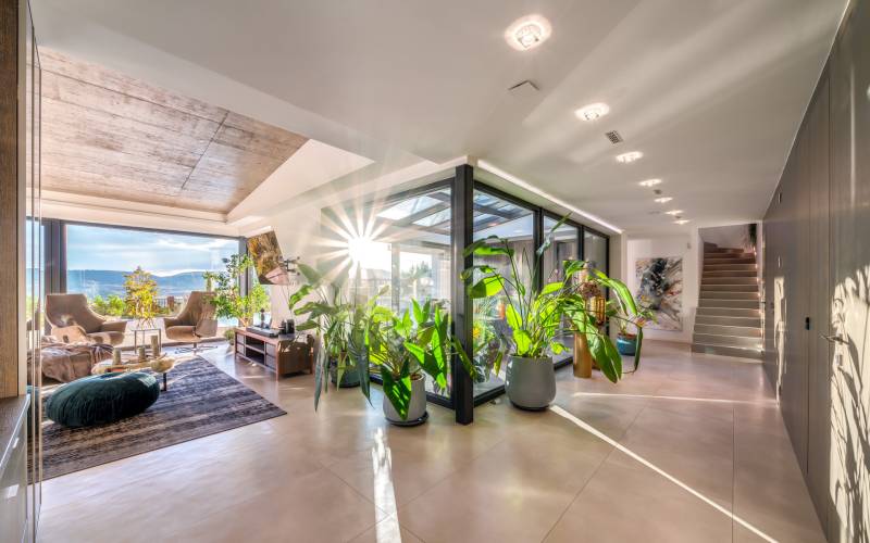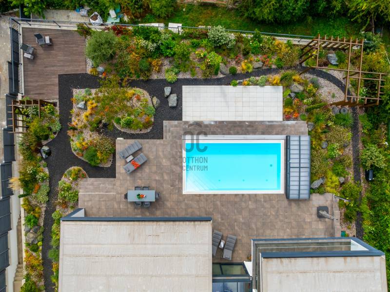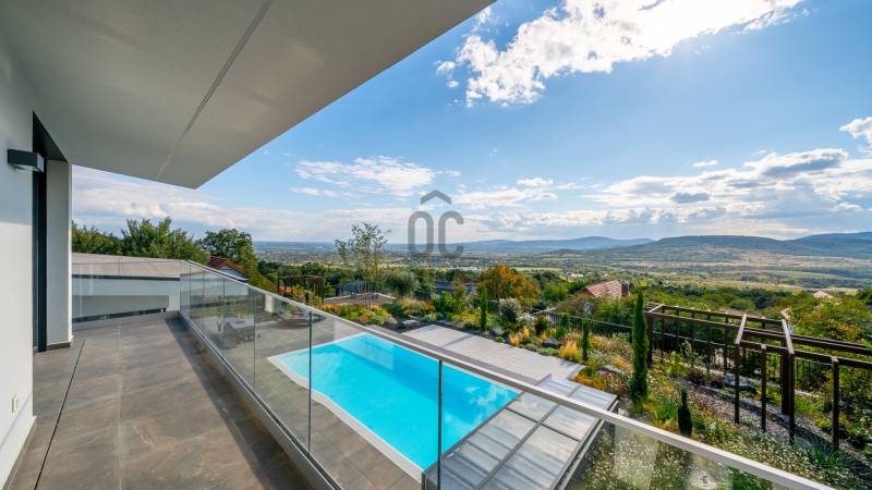 Egy hely, mely inspirál, energetizál, ahol önmagad lehetsz. Ebben a környezetben nincs legyőzhetetlen akadály. Üdv itthon! RÖVID ÖSSZEFOGLALÓSzentendrén, Szarvahegyen, a panorámás Tambura utcában – eladó ez a 278 m²-es, kétszintes, négy hálószobás, három fürdőszobás modern családi ház.A tágas terek, a medence, a kétállásos garázs, a hőszivattyús padlófűtés és mennyezethűtés, valamint a dél–nyugati fekvésű, zavartalan kilátás mind azt szolgálják, hogy itt a mindennapok álomszerűek lehessenek.Egy ház, ahol a fény mozdulatot formál, és a tér minden napszakban más arcát mutatja.Szentendre – és benne SzarvashegySzentendre sosem csupán város, inkább egy finoman pulzáló önálló világ melynek egyedi miliője semmihez sem hasonlítható. Kicsit olaszos, kicsit mediterrán - macskaköves utcái által mesebeli világba csöppen az ember és szinte észrevétlenül lelassítja lépteit.Szarvashegy az egyik legnemesebb pontja: levegője tiszta, a fák között átszűrődő fény pedig minden órában más hangulatot ad a tájnak. Innen a város látványa festményszerű – a házak teteje, a Duna kékje, a Pilis sziluettje együtt rajzolja ki azt a képet, amit naponta látva sem lehet megunni.A Tambura utca a domboldal csendes, zöld szeglete, ahol a naplemente a hegyek mögül lép elő, és estére borostyánfénybe burkolja a kertet. A környék ideális családoknak: iskola, óvoda, helyi bolt, pékség és sportpályák néhány percre, a belváros pedig tíz perc alatt elérhető.Aki Szarvashegyen él, tudja, hogy innen minden elérhető – csak épp nem kell rohanni érte.Egy vasárnap reggel a Pékműhely kovászos kenyereivel, délután séta a Bükkös-patak partján, este egy csendes borozás a teraszon — ezek nem programok, hanem ritmusok, amik idővel az élet részévé válnak.Kívül – a táj részekéntA Tambura utcai ház a domboldal természetes vonalait követi – nem uralja, inkább kiegészíti a tájat. A letisztult, modern forma, a beton és üveg finom játéka tökéletes ritmust talál a körülötte lélegző zölddel.A homlokzat kétszintes arányai határozottak, de nem szigorúak; a horizontális vonalak és a nagy üvegfelületek között megmarad az egyensúly, amelytől a ház – bár kortárs – mégis meleg és élhető.A kert lépésről lépésre tárul fel, mintha egy gondosan komponált sétaút lenne. Az illatos növények és örökzöldek keverednek az évelő virágokkal, majd a tekintet lassan a medence irányába vezet. A víztükör szinte egybeolvad a látóhatárral – az ég és a táj közötti határ elmosódik.A növényzet nem díszlet: levendula, olajfa, díszfüvek és kőágyások teremtik meg azt a mediterrán hangulatot, amely nyáron élettel tölti meg a kertet, télen pedig elegánsan visszafogott marad.A terasz tágas, természetes kőburkolata a medencével együtt a ház szíve. Itt minden a kilátásra épül – a Pilis lágy ívei, a Duna csillanása és Szentendre fényei alkotják azt a látványt, amely nemcsak díszlet, hanem a mindennapi élet része.Ahogy a nap lemegy, a medence fénye lassan átveszi a természet szerepét: a víz kékje dereng, a ház üvegfelületein megcsillan az esti fény, és a kert halk esti zsongásában az ember szinte észrevétlenül lelassul.Belül – tér, fény, ritmusAhogy belépünk, az első érzés a tágasság. A nagy üvegfelületeken át a tekintet szinte azonnal a kertbe fut, mintha a külső tér folytatódna a nappaliban. A beton mennyezet karaktere határozottságot ad, míg a meleg árnyalatú padló és a bársonyosan puha textíliák lágyítják a struktúrát – a ház egyszerre hűvös és otthonos, mint egy mély levegővétel a nyári délutánban.A nappali–étkező–konyha egyetlen folytonos tér, ahol a fény a legfontosabb szereplő. Reggel finoman áttör a függönyökön, délután táncol a márványfelületeken, estére pedig aranyló derűt von a bútorokra. A konyha központi eleme a természetes kősziget, amely egyszerre funkcionális és látványelem – itt zajlik a mindennapi élet, mégis marad benne valami ünnepélyes.A lépcső, amellyel az emeletre érkezünk, szinte szoborszerű. A lebegő hatású, fényekkel kísért fokok nemcsak közlekedést szolgálnak, hanem finom ritmust adnak a belső térnek – ahogy lépsz, a ház is mozdul veled.A hálószobák már más hangon szólnak. A főhálóban a mennyezeti ablakon át a nap első fényei puhán szűrődnek be, a falakon természetes tónusok, a textúrák között sötét fa és puha szövet váltakozik. Itt minden a pihenésről szól: a csendről, ami nem üresség, hanem jelenlét.A fürdőszobák az anyagok harmóniájára építenek: kő, üveg és fény dolgozik együtt, hogy a napi rutinból rítus legyen. Minden részlet átgondolt – a burkolatok mintája, a rejtett világítás, a terek aránya mind azt a gondoskodást tükrözik, amely ezt a házat áthatja.Ebben az otthonban nincs semmi véletlen. Minden vonal a kilátásra, minden ablak a fényre, minden anyag az időre van hangolva.A külső és belső terek között nincsen határ – inkább egyfajta lassú átmenet, mint amikor a naplemente színei fokozatosan olvadnak át az esti fénybe.Ez a ház nem egyszerűen épült – komponálták.Amennyiben szeretné személyesen is megtapasztalni ennek az otthonnak egyedülálló atmoszféráját, várom megkeresését.