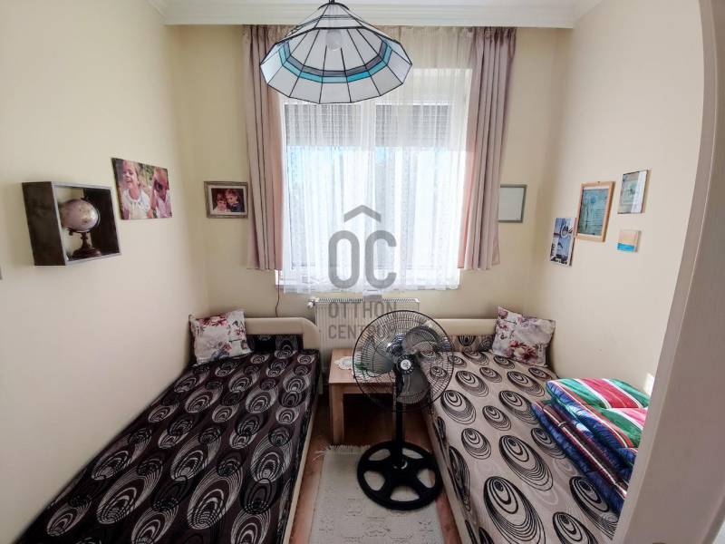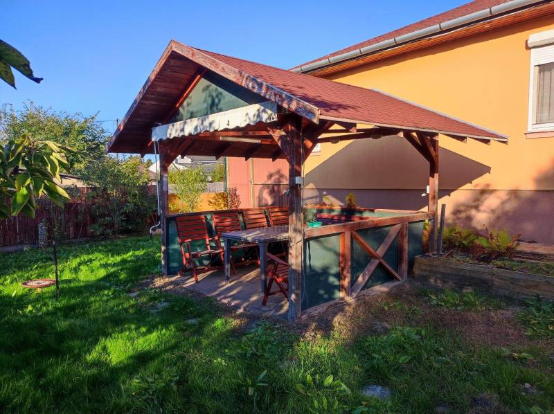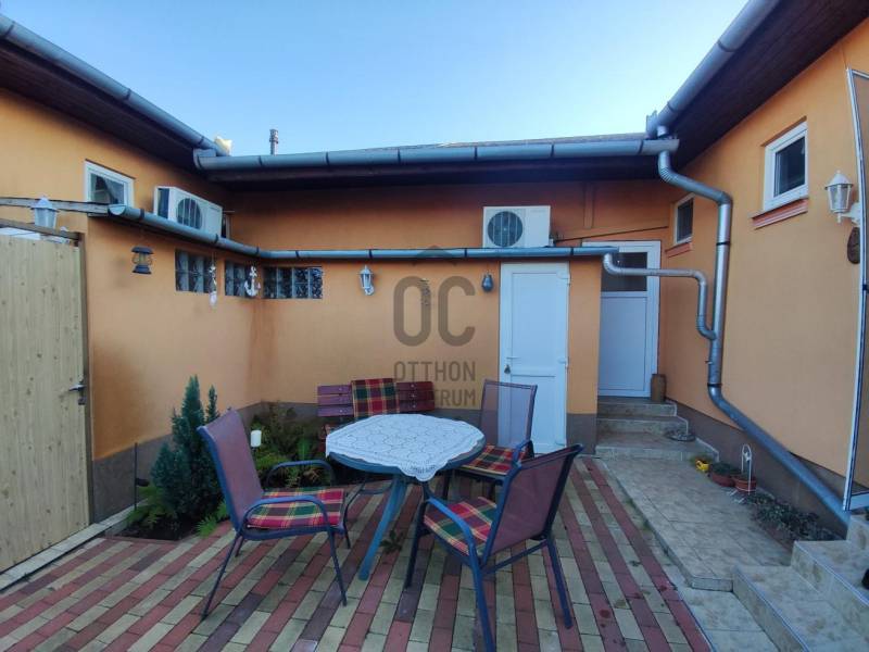 Eladó Debrecen Lázár utcán 2005-ben épűlt, 500 nm-es önálló telekrésszel rendelkező 5 szobás, 2 fürdőszobás, 2 konyhás kiváló állapotú ikerház.Az ingatlan kettő külön részre osztásával, lehetőség nyílt kettő család részére különálló életteret biztosítani, egymástól független bejárattal.Az ingatlan jellemzői:- különálló kettő lakrész, külön bejárattal- az első részben nappali-étkező, konyha + 2 szoba + fürdőszoba + külön WC + gardrób és előszoba található- a második részben nappali + szoba + konyha-étkező + fürdőszoba + külön WC- az utóbbi részhez tartozik egy terasz, valamint tároló,- mindkét rész klímával felszerelt- a különválasztott részek az elválasztók elbontásával könnyedén ismét egybe nyíthatóak, így egy 5 szobás, kettő fürdőszobás, kettő konyhás terület áll majd a család rendelkezésére.- a 7 KW-os napelem rendszernek, valamint a szigetelésnek köszönhetően az épület energia igénye minimálisnak mondható- a telken fúrott kút, filagória, és bográcsozó/kemence található- az ingatlan fa könnyűszerkezetes technológiával épült- a ház riasztó rendszerrel ellátottEz a csendes barátságos otthon ideális választás lehet összeköltöző, vagy a lakóterület újbóli egybenyitásából adódóan nagyobb létszámú családoknak egyaránt.Amennyiben felkeltette érdeklődését ez a kivételes ingatlan, kérem ne habozzon megkeresni további információkért, hiszen célunk az, hogy segítsük Önt a lehető legjobb döntés meghozatalában.