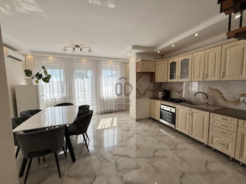 ÁRCSÖKKENÉS!Kedves érdeklődő!A 2008-ban épült, liftes, tégla társasházban található 3 szobás ingatlan teljes körű felújításon esett át 2025-ben – csak be kell költözni!A lakás két szinten helyezkedik el, világos, tágas terekkel, modern burkolatokkal, új beltéri ajtókkal és teljesen megújult elektromos hálózattal.Két fürdőszoba WC-vel, amerikai konyhás nappali, 4 nm-es erkély és két franciaerkély teszi igazán kényelmessé az otthont.3 hűtő-fűtő klíma gondoskodik az ideális hőmérsékletről minden évszakban. A műanyag nyílászárók redőnnyel felszereltek, a lakás pedig rendkívül csendes és napfényes.A társasház közös kerttel rendelkezik, az udvaron parkolási lehetőség van, az utcán pedig ingyenes a parkolás. A város legfrekventáltabb részén található: üzletek, iskola, orvos, tömegközlekedés mind elérhető pár perc alatt.Ez a lakás tökéletes választás lehet akár családnak, akár befektetési célra!A hirdetésben szereplő információk a megbízótól kapott adatok alapján készültek, pontosságukért felelősséget nem vállalunk! Az alaprajz csak tájékoztató jellegű!Amennyiben vásárláshoz hitelre is szüksége van, független hitel tanácsadónk ingyenesen tud Önnek segítséget nyújtani a legjobb konstrukciók kiválasztásában és a folyamat lebonyolításában. Irodánk kereső ügyfeleinknek teljes körű szolgáltatást nyújt, szakszerű tanácsadással, energetikai tanúsítvány elkészítésével, hitelügyintézéssel és profi ügyvédi segítséggel. Abban az esetben ha az ingatlan felkeltette érdeklődését keressen bizalommal!