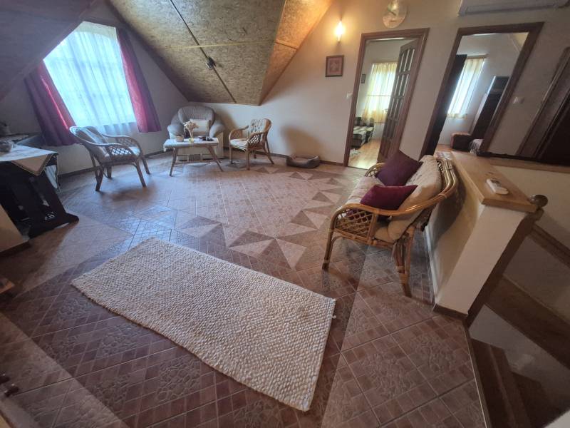 Kővágóörsön kitűnő állapotú, 170nm-es családi ház eladó!A Káli-medence szívében, Kővágóörsön kínáljuk megvételre ezt a lakó-üdülő övezetben elhelyezkedő, folyamatosan karbantartott, kétszintes, tökéletes állapotban lévő családi házat, mely egy 847 nm-es, parkosított telken található. - A lakóház a 2000-es évek elején épült, csendes, nyugodt környezetben, természetközeli, mégis közel a központhoz. - A földszinten előtér, tágas nappali, konyha-étkező, kamra, fürdőszoba található. - A tetőtérben 3 hálószoba, nappali, fürdőszoba került kialakításra. A nappalik bővíthetőek plusz szobával. - Pince szint: társalgó szoba, garázs, kazánház, pakoló helyiség. - Télen vegyes tüzelésű kazán, radiátoros fűtés, kandalló és Nobo panel gondoskodik a melegről. - Nyáron 3 db hűtő-fűtő klíma biztosítja a komfortot. - A telken fedett grillező, étkező, több autó számára parkolási lehetőség, a kert teljesen körbekerített. - Elhelyezkedés: autóval 5 perc Révfülöp, 3 perc a pálkövei strand.Az ingatlan tökéletes állandó otthonként, nyaralónak, vagy akár befektetésnek is! Igény szerint tovább bővíthető.Amennyiben kérdése lenne vagy szeretné személyesen megtekinteni az ingatlant, forduljon hozzám bizalommal!