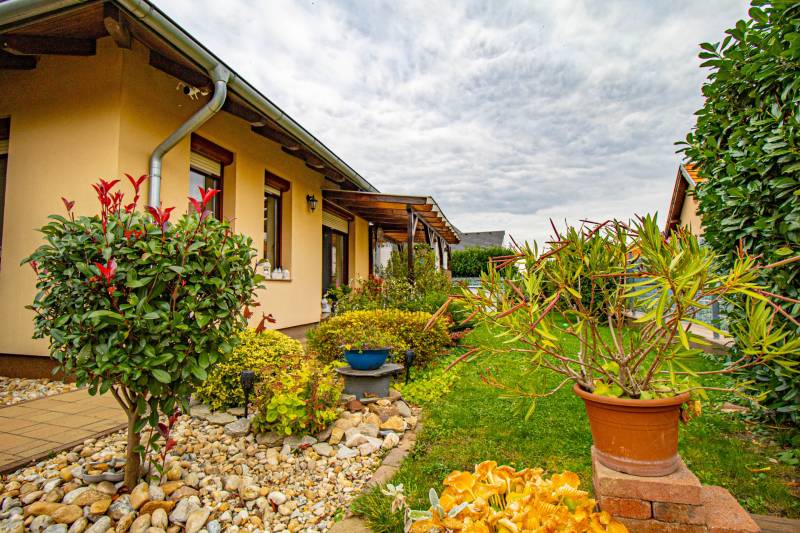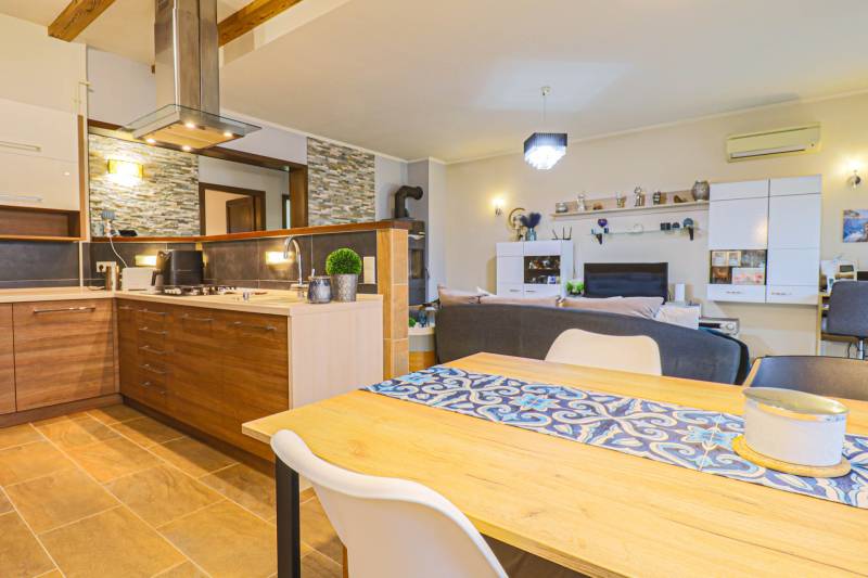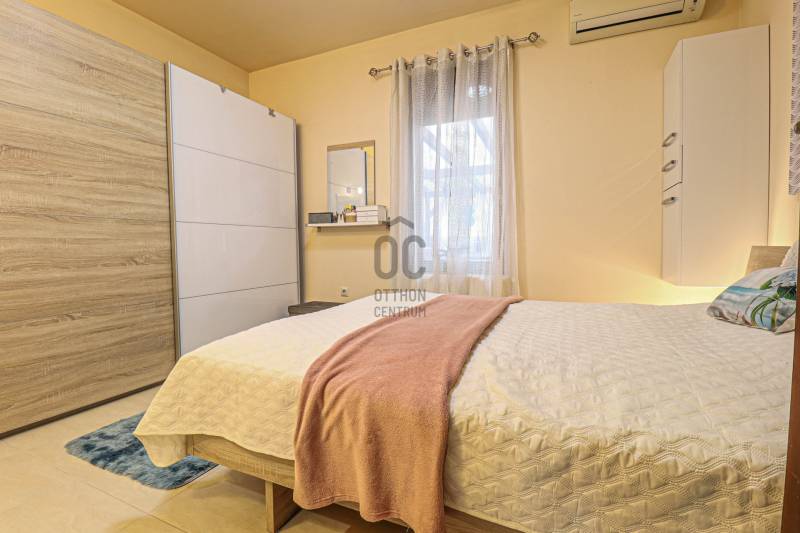 Soprontól mindössze néhány kilométerre az Alpok lankáinál kerül eladásra egy mediterrán stílusú családi ház.AZ INGATLAN JELLEMZŐIÉpítés éve: 2013Kétszintes, nettó 148 m² / bruttó 185 m² alapterület38-as Porotherm tégla építés, 10 cm-es szigeteléssel554 m2 telekHELYISÉGEK ÉS ELRENDEZÉSFöldszint:Amerikai konyhás nappali teraszkapcsolattal2 hálószoba, az egyik saját fürdőszobávalFürdőszoba + külön toalettKamra, háztartási helyiség (gépesített, vízlágyítóval és ivóvíz rendszerrel)KÜLÖN LAKRÉSZ ami a FŐ LAKRÉSZBŐL is MEGKÖZELÍTHETŐ26,8 m²-es, külön bejárattal is, saját konyhával és fürdőszobával➡️Ideális két generáció együttélésére vagy vállalkozás, rendelő, iroda kialakítására is.Emelet:1 szoba1 tárolóMŰSZAKI FELSZERELTSÉGFűtés: padlófűtés, Vaillant kazán (2024-es csere)Hangulatos öntöttvas kandalló Melegvíz: 180 literes tároló4 db hűtő-fűtő klímaRiasztó- és kamerarendszerBorovi fenyő beltéri ajtók, Rehau műanyag bejárati ajtóLépcső alatti beépített szekrény, padlás tárolási lehetőséggelKERT ÉS KÜLTÉR25 m²-es fedett terasz dombokra és naplementére néző csodás kilátássalMedence (3×1,2 m), kerti zuhany, tűzrakó / grillezőKét kerti tároló: 7,8 m² és 7,1 m²Kutyakennel: 3×2 mGarázs és fedett előgarázs (Hörmann kapukkal)Kút, amely biztosítja az öntözéstKonyhakertLOKÁCIÓA ház zöldövezeti, csendes környezetben található, mégis rövid autóútra Soprontól. A település kiváló infrastruktúrával rendelkezik – bölcsőde, óvoda, iskola, orvosi ellátás, posta, üzletek és éttermek mind helyben megtalálhatók.A közösségi élet aktív, rendszeres rendezvényekkel, sportolási lehetőségekkel és túraútvonalakkal.A közelben Natura 2000-es természetvédelmi terület és horgásztó kínál kikapcsolódást a természet szerelmeseinek.Tökéletes választás mindazoknak, akik a természet közelségét és a városi infrastruktúra előnyeit egyszerre szeretnék élvezni.Hitelre van szüksége?Az Otthon Centrum az ország egyik legnagyobb és legmegbízhatóbb hitelközvetítőjeként, teljes körű és díjmentes hitelügyintézéssel, biztosításkötéssel áll rendelkezésére!Kérje személyre szabott ajánlatunkat Kollégáinktól!