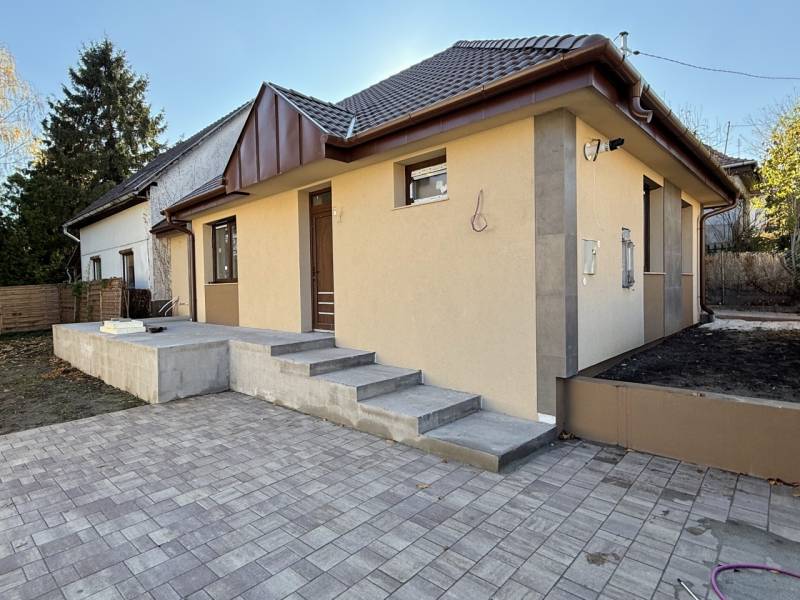 Új építésű, kulcsrakész családi ház eladó Pécelen, a Kolozsvári utcában!Pécel egyik csendes, rendezett mellékutcájában eladó egy új építésű, földszintes családi ház 330 m²-es kizárólagos használatú telekrésszel, amely egy meglévő épülethez kapcsolódva, bővítési engedéllyel épült modern műszaki tartalommal és minőségi anyaghasználattal.A ház nettó 72,5 m² alapterületű, melyhez 16,66 m²-es terasz és 3,85 m²-es belépő is tartozik. A belső elosztása praktikus és átgondolt:tágas nappali–konyha–étkező, két hálószoba, két fürdőszobaA 30 cm Porotherm téglafal és a 15 cm EPS homlokzati hőszigetelés kiváló hőmegtartást biztosít. A vízszintes fa födémen 30 cm ásványgyapot szigetelés, a padlóban 10 cm lépésálló hőszigetelés található.A 3 rétegű üvegezésű, hőszigetelt nyílászárók között toló teraszajtó, valamint alumínium, hőszigetelt elektromos redőnyök és szúnyoghálók is beépítésre kerültek.A fűtésről kondenzációs gázkazán gondoskodik padlófűtéssel, a kellemes hőmérsékletet hűtő-fűtő klíma egészíti ki.A térkövezett járda és autóbeálló, elektromos kapu, valamint a modern, letisztult kerítés tovább emeli a ház kényelmét és esztétikáját.Az ingatlan kulcsrakészen kerül átadásra 2 hónapon belül.Minőségi burkolatok, szaniterek beltéri ajtók kerülnek beépítésre.Ez a ház ideális választás mindazoknak, akik modern, energiatakarékos otthont keresnek nyugodt környezetben, mégis közel Budapesthez.INGYENES hitel tanácsadás, CSOK Plusz ügyintézés!BANKFÜGGETLEN hitelcentrumunk az összes elérhető bank és hitelintézet ajánlatát versenyezteti az Ön kedvéért, ráadásul DÍJMENTESEN.- Egyedi, bankfiókban nem elérhető kamat- és díjkedvezmények- Hitelképesség vizsgálat- Idő, energia és pénz megtakarítás- Teljes hivatali ügyintézésAmennyiben hirdetésem felkeltette az érdeklődését vagy egyéb információra van szüksége hívjon bizalommal!