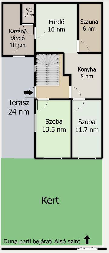 Szigetszentmiklós legszebb részén a vadregényes Tanösvény mentén, kétgenerációs, jó állapotú, br. 206 nm-es, két teraszos ház eladó! A közlekedés kiváló, a kaputól 300 méter sétatávolság a HÉV megálló és a 38-as busz (kék) megállója 100 méterre található.Szigetszentmiklós legszebb, vízpart közeli részén a Rév soron, a vadregényes világot nyújtó Tanösvény mentén, közvetlen a Duna parton kínálok megvételre egy jó állapotú, két generációs családi házat.A környék csendes és biztonságos, ideális választás családosoknak.A vízparti elhelyezkedés biztosítja a pihenést és a kikapcsolódást, lehetőséget nyújt a horgászatra, csónakázásra, vízi sportokra, továbbá ez a partszakasz hajókikötővel rendelkezik, ahol játszótér, tenisz pályák és a hangulatos Sétány Tenisz és Bisztró várja a vendégeit.Az egy helyrajzi számon bejegyzett bruttó 206nm-es körbe napozott, három szintes ingatlan egy 223nm-es telken helyezkedik el.Jelenleg egy család lakik életvitelszerűen a két utcáról külön kapukon át megközelíthető házban, de mivel a Tulajdonos két külön álló lakássá alakította és engedélyeztette – külön mérőórákkal, ezért így remek megoldás két generáció részére, vagy befektetésnek – az egyik lakrész kiadásával.A fűtést és a melegvíz ellátást gázról és éjszakai áramról egy két mérőórás 150 literes kombinált kazán szolgáltatja. A fűtés kétkőrös, külön működtethető a padló, illetve a radiátoros rendszer. Nyáron a kellemes hőmérsékletet klíma biztosítja.A rezsi költségek alacsonyak.A z ingatlan riasztóval és videó kamerás kaputelefonnal rendelkezik.Az egyik lakás az alsó szinten helyezkedik el, nettó 64nm-es, a bejárata a Duna part felőli kapun át a kerten keresztül közelíthető meg, 24nm-es terasszal, plusz egy 12 nm-es kazán és tároló helyiséggel rendelkezik. Itt található két külön bejáratú szoba, konyha étkezővel és egy tágas fürdőszoba hidromasszázs káddal, külön álló szaunával, mely wellness érzést biztosít.A másik lakás kétszintes, az utca szint felől közelíthető meg és a 21nm-es teraszról nyílik a bejárata. Bruttó 128nm (1,9m-nél mért területtel) lakótér, tágas nappalival, nagy méretű konyha – étkezővel, két nagy hálóval, tágas fürdővel rendelkezik.A közlekedés kiváló! A kaputól 300 méter sétatávolság a HÉV megálló és a 38-as busz (kék) megállója 100 méterre található.További információkért és a megtekintéssel kapcsolatosan, hívjon bizalommal!