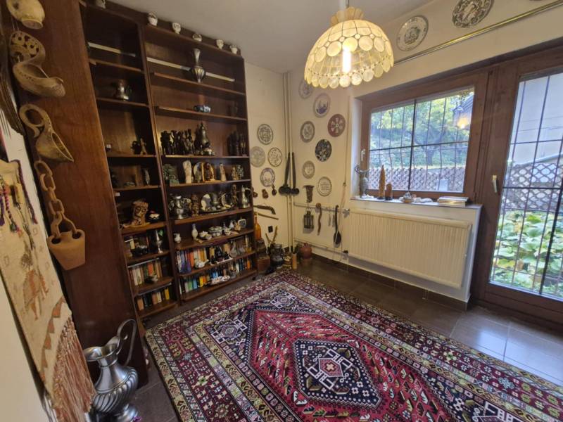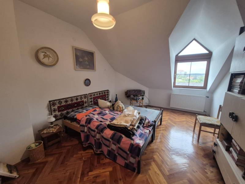 Veszprém belvárosához közel, de mégis csendes, zöldövezeti részen vált eladóvá ez az 1990-es évek elején épült tégla családi ház, mely 3 szinten mintegy 300 négyzetméter hasznos alapterülettel rendelkezik.A ház - elhelyezkedését tekintve - átmenő forgalomtól mentes helyen, egy zsákutca végén található, körbekerített, parkosított telken. A második és harmadik emeletéről is szép rálátást kapunk a veszprémi Várra és várnegyedre, mely egyedi panorámát kölcsönöz a nappalinak és a szobáknak is.Az ingatlan összközműves, riasztóval védett. Belső kialakítását tekintve egy többgyermekes családnak, de akár többgenerációs otthonnak is tökéletes választás lehet! A ház szintenkénti elosztása:- Földszint: előszoba, fogadótér - lépcsőház, szoba, közlekedő, fürdőszoba, mosókonyha/ gépészet, kamra, tároló, garázs, - 1. szint: közlekedő, hálószoba, nappali + terasz, wc, fürdőszoba, kamra, dolgozó szoba, konyha+ étkező közvetlen udvarkapcsolattal- 2.szint: 3 hálószoba, teakonyha, közlekedő, fürdőszoba, wc, tárolóA ház fűtését gázkazán látja el radiátoros hőleadókkal, nyílászárói fából készültek.Amennyiben kérdése merülne fel az ingatlannal kapcsolatban vagy szeretné megtekinteni, kérem keressen megadott elérhetőségeim egyikén!
