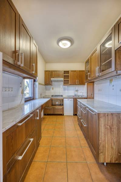 Megvételre kínálok a XVIII. ker. Miklóstelepi részen egy 1990-ben épült, 659 nm-es telken elhelyezkedő, összesen 242 nm-es, háromszintes, téglaépítésű, jó állapotú családi házat. Átmenő forgalomtól mentes saroktelken helyezkedik el körbejárható, kíváncsi szemektől védett kerttel.Az ingatlan 5 szobás, 2 fürdőszoba , külön wc, három erkély, szauna szoba, riasztóval védett.Kialakítása és elhelyezkedése miatt alkalmas irodának ,bemutatóteremnek , a lakás pincerésze alkalmas raktárnak ami 80 nm -esAz ingatlan fűtését cirkó- és padlófűtés biztosítja, amit még kiegészít CASCADE split klíma is.A pince szinten garázs (elektromos kapuval), valamint két további helyiség található. A kertben akár két autó fedett beállása megoldott.Az épület 35 cm-es porotherm téglából épült, betonfödémes, cseréptetős és napelemmel felszerelt.Tömegközlekedés: 93, 93A, 198, 217, 217E, 200E buszok a közelben elérhetők.Várom megtisztelő hívását, akár hétvégén is