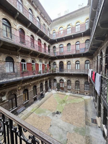 Eladó különleges, belső kétszintes lakás a Palotanegyed szívében!Budapest 8. kerület, Somogyi Béla utcában eladó egy 68 nm hasznos alapterületű, belső kétszintes lakás egy klasszikus, körfolyosós polgári ház első emeletén.A lakás eredetileg 5 méteres belmagasságának köszönhetően egy praktikus galériaszint került kialakításra, ahol 220 cm-es belmagasság biztosítja a kényelmes mindennapokat.Az alsó és felső szint jól kihasználható tereket kínál, így ideális lehet saját otthonnak vagy befektetésnek egyaránt. A fürdő és a WC egy helyiségben található.Központi, mégis csendes elhelyezkedése miatt tökéletes választás azoknak, akik a belváros nyüzsgését szeretnék élvezni gyalogtávolságra a Blaha Lujza tértől, metró- és villamosmegállóktól, egyetemektől és éttermektől.Főbb jellemzők:Kétszintes lakás, összesen 75 nm használható terület5 méteres belmagasság, galériaszint 220 cm belmagassággalElső emelet, körfolyosós, polgári házFrekventált elhelyezkedés, kiváló közlekedésAlacsony rezsi, jó beosztás, világos terekIdeális választás befektetőknek, fiatal pároknak vagy első lakásnak!