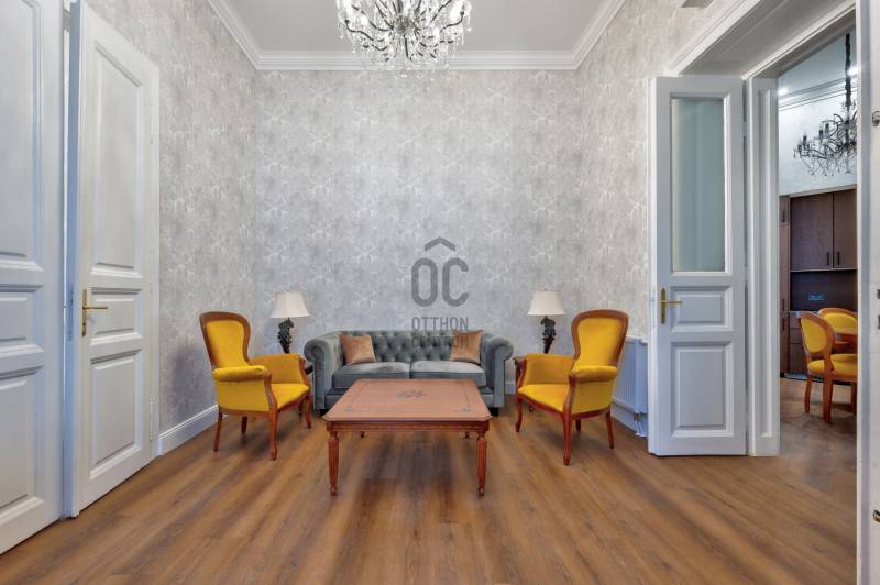 Körönd Palace – Történelem, Luxus, Elegancia.Lakjon Ön is Budapest egyik legikonikusabb palotájában, az Andrássy út ékkövében, a Kodály körönd szívében!A Körönd Palace nem csupán egy épület – ez egy életérzés, ahol a történelem eleganciája és a modern luxus kéz a kézben kíséri mindennapjait.Itt a múlt, a jelen és a jövő találkozik – harmóniában, stílusban, időtlen értékben.A Palota Lelkében – Ahol a Luxus Otthonra TalálA neoreneszánsz palota tervezője Kauser József, a Szent István Bazilika befejező mestere.A felújított épület minden részlete a mesteri eleganciát tükrözi: márványburkolatok, míves kőfaragások, lenyűgöző homlokzat és négy különleges belső kert várja a lakókat.A palota teljes újjászületésen ment keresztül, hogy ismét régi fényében ragyoghasson.A belső terek megújítását Varró Zoltán, a nemzetközileg elismert, Gold Key Award-díjas designer álmodta meg – ugyanaz a tervező, aki a Mystery Hotel, az Aria Hotel és a 2 Michelin-csillagos Onyx Étterem enteriőrjeit is megalkotta.A Versailles-i pompára emlékeztető palotában, a fényűző belső udvarok halastóval, pálmakerttel és szobrászati remekekkel díszített belső parkkal kerültek kialakításra:– A Reneszánsz Kert szökőkútjaival és virágaival a béke szigete.– A Pálmakert mediterrán hangulatú, rejtett oázis.– Az Angolkert a legzöldebb udvar, ahol természet és építészet egyensúlya uralkodik.– A díszudvar pedig elegáns szobraival és teraszaival méltó dísze a Kodály körönd történelmi hangulatának.Kiadó luxuslakások – azonnal költözhetően:A belső két szinten elhelyezkedő, nettó 162 m²-es lakás minden igényt kielégít. Tágas, nagy belmagassággal rendelkező szobák, nagyvonalú terek jellemzik az ingatlant.A tetőteraszon Budapest panorámája tárul elénk – minden reggel egy élmény, minden este egy pillanat, amit jó megélni.A lakások teljesen berendezve kerülnek átadásra: prémium bútorok, egyedi világítás, modern konyha – Önnek már csak a személyes tárgyait kell hoznia.Ahol a város lüktetése és a nyugalom találkozikA Körönd Palace lakói a város szívében élhetnek, miközben egy időtlen eleganciát árasztó környezetben pihenhetnek.Ez az a hely, ahol minden nap emlékezetes, és ahol a luxus nem hivalkodás, hanem életforma.Körönd Palace – Egy hely, amit nem csupán lakni, hanem megélni lehet.Kiadó lakások már most elérhetők – hívjon minket a részletekért, és lépjen be Budapest egyik legnemesebb otthonába!