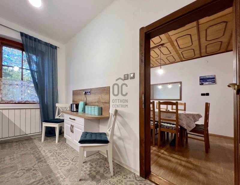 Vannak házak, amelyekről már az első percben érzed, hogy különlegesek. Ez az ingatlan is ilyen – meleg, hívogató és tele lehetőséggel!Balatonlellén, központi, mégis csendes és biztonságos utcában, az óvoda, iskola és bölcsőde közelében eladó egy sokoldalúan hasznosítható, tágas családi ház melléképülettel és gyümölcsfákkal teli kerttel.A Balaton szabadstrandja mindössze 5–6 perc kerékpárral, így az otthon és a nyaralás élménye tökéletesen összefonódik.Telek: 1122 nm teljesen körbekerítettGyümölcsfákkal tarkított (füge, cseresznye, dió, málna) árnyas kert.FÖLDSZINT: 108 m²*előszoba* új konyha beépített gépekkel (sütő, mosogatógép, mikró)* hatalmas étkező-nappali (déli tájolású, világos terek)* 2 hálószoba* fürdőszoba + külön WC* fedett, árnyas terasz: 34 m²EMELET: 107 nm, külön bejárattal is megközelíthető * két apartmanná alakítható*4 szoba*2 fürdő*2 minikonyhaIdeális több generáció számára vagy nyaraltatásraMűszaki adatok:Porotherm tégla falazatBramac tetőcserépEgyedi gyártású tölgyfa nyílászárók, díszes tömörfa ajtókeretek, kazettás mennyezetKitűnő állapotú, újrarakatott cserépkályhaGázkazán + gázkonvektoros fűtésMelegvíz villanybojlerről3×20 A nappali + 3×20 A éjszakai áram, földkábeles csatlakozássalPince: 23 m² – bor, zöldség, növények tárolására kiválóMelléképület és parkolás*Felújítandó földszintes nyári lak garázzsal*Fedett autóbeálló és garázs – akár hajótárolásra is megfelelő, vállalkozásra, műhelynek, táncteremnek is alkalmas lehet.Elhelyezkedés és környezet:Balaton: 2 km – kerékpárral 6 percIskola: 300 mÓvoda és bölcsőde: 200 mA közelben minden elérhető: Lidl, Aldi, Spar, Jysk, Rossmann, DM, mentőállomás, kikötő, hajóállomásA tágas terek, minőségi anyagok és a kiváló elhelyezkedés egyaránt hozzájárulnak ahhoz, hogy ez az otthon hosszú távon értékálló befektetés legyen.OTTHON START, CSOK+ igényelhető az ingatlanra.További információért keressen bátran!
