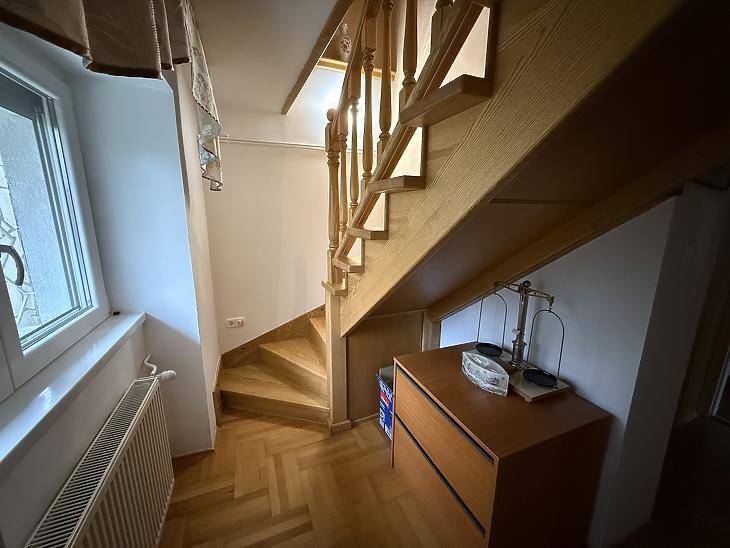 SZENTENDRÉN ELADÓ EGY KÉTGENERÁCIÓS ÖNÁLLÓ CSALÁDI HÁZ!A KÖRNYÉK:Az ingatlan egy csendes, jó lakóközösséggel rendelkező környezetben helyezkedik el, a buszmegállótól csupán 2 perc sétára, ahonnan busszal könnyen, 14 perc alatt megközelíthető a szentendrei HÉV megálló, illetve a városközpont is. A HÁZ JELLEMZŐI:- Telek: 980 nm.- A ház hasznos alapterülete 150 nm.- Plusz egy 20 nm-es fedett kocsibeálló, de a telken belül 3-4 autó is elfér.- Az 1980-as években épült, B30-as téglából, 10 cm Dryvit szigetelést kapott.- 2004-ben az ingatlan felújításon esett át.- A tetőt zsindely fedi, 20 cm-es kőzetgyapot szigeteléssel.- A fűtésért egy Bosch kombi gázkazán felel, ami radiátorokon adja le a meleget, csövezete réz.- Plusz a felső emeleti nappaliban megtalálható egy hangulatos kandalló is.- A villanyhálózat vezetékezése réz.- Kétrétegű, műanyag nyílászárók, mindenhol redőnnyel, illetve szúnyoghálóval felszereltek.- Riasztórendszer került kialakításra.FINANSZÍROZÁS:Tehermentes, banki finanszírozással is megvásárolható, melyben irodánk ingyenes tanácsadással áll rendelkezésükre! VEVŐINK RÉSZÉRE A KÖZVETÍTÉS DÍJTALAN! A hirdetésben szereplő adatok tájékoztató
