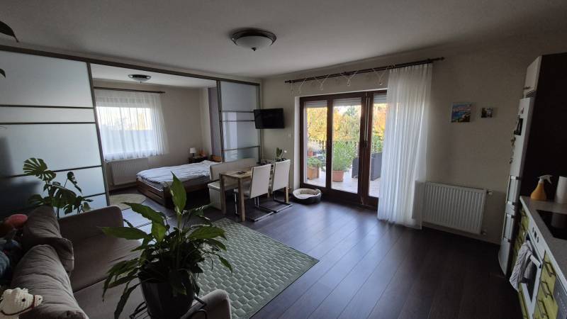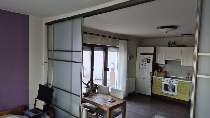 Nagy teraszos lakást keres a Svábhegyen?Most eladóvá vált a csendes Normafa úton egy jó hangulatú, zöldre néző 50m2 alapterületű ingatlan, amelyhez egy fantasztikus 33 m2-es terasz tartozik (a terasz 1/3-ával számolva nettó 61 m2).A lakás felújított, amerikai-konyhás nappali, leválasztott háló, külön kisszoba, fürdő, önálló WC és gardrób alkotja.A terasz a nappaliból nyílik, így szerves része a családi programoknak, kikapcsolódásnak.A lakás a kétszintes ház első emeletén található, önálló bejárattal rendelkezik.A ház és a telek is osztatlan közös tulajdonban van, amelyet ügyvéd által ellenjegyzett használati megállapodás szabályoz.Tulajdonos visszabérelné.Az utcában ingyenes a parkolás, a közelben mindig van szabad hely.