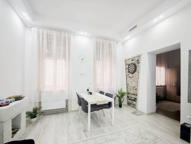 Új tulajdonosát keresi Újpesten egy csendes, felújított, földszinti lakás jó közlekedéssel és infrastruktúrával. Ha szép állapotú, alacsony fenntartási költségű, élhető terekkel rendelkező ingatlant keres, akkor ezt ne hagyja ki!A KÖRNYÉKRŐL:- Budapest IV. kerülete, Újpest, Erkel Gyula utca.- Funkcionálisan jól ellátott környék, fejlődő kerületi központ közelében.- Gyakorlatilag Újpest-Központ vonzáskörzete, gyalog, autóval és tömegközlekedéssel is gyorsan elérhető.- Több buszjárat megállója megtalálható sétatávolságban, a legközelebbi buszmegálló 300 méter.- Újpest-Központ és az M3 metró 7 perc busszal, 13 perc gyalogosan.- 10 perces körön belül elérhető minden, ami a napi élethez szükséges.A HÁZRÓL:- 1960-ban épült, 16 lakásos, földszintes, téglaépület.- Kívül-belül átlagos állapotú.- Rendezett közös belső udvarral rendelkezik.A LAKÁSRÓL:- Földszinti, 48 m2-es, 2 szobás, felújított ingatlan.- Kifejezetten csendes és hangulatos, fiatalos otthon.- Rendkívül praktikus elrendezésű, modern kialakítású, élhető terekkel rendelkezik.- Jelenlegi felosztása: előszoba-konyha, nappali + 1 hálószoba, zuhanyzós fürdőszoba-wc.- A hálószoba a nappaliból nyílik, a szobák az utcára néznek.- A nyílászárók részben műanyagok, részben modern fa szerkezetű ablakok.- A lakásban lévő burkolatok modern színvilágúak és jó minőségűek.- A lakáshoz tartozik egy 6 m2-es saját pincerekesz.AZ INGATLAN MEGTEKINTHETŐ:- személyesen,- online személyes bejelentkezéssel.FINANSZÍROZÁSI KÉRDÉSEKBEN ONLINE ÜGYINTÉZÉSSEL IS SEGÍTÜNK:- Bank-független hitelcenterünk díjmentesen versenyezteti minden bank és hitelintézet ajánlatát.- Önnek nincs más dolga, mint beszélgetni munkatársunkkal, majd a megversenyeztetett ajánlatokból kiválasztani a hosszútávon is a legmegfelelőbb konstrukciót.- Szakértőink 20 éves szakmai tapasztalattal és egyedi igényekre szabott, fogyasztóbarát lakáshitelekkel, babaváró hitellel, teljes körű CSOK PLUSZ és OTTHON START program ügyintézéssel várják Önt.- Előre egyeztetve akár a normál munkaidő után is.Kifejezetten ajánlom pároknak, vagy egyedülállók részére. Könnyű megközelíthetősége és a környék ellátottsága miatt bármely korosztály számára kényelmes otthon lehet.További információért és megtekintési időpontért hívjon bizalommal.