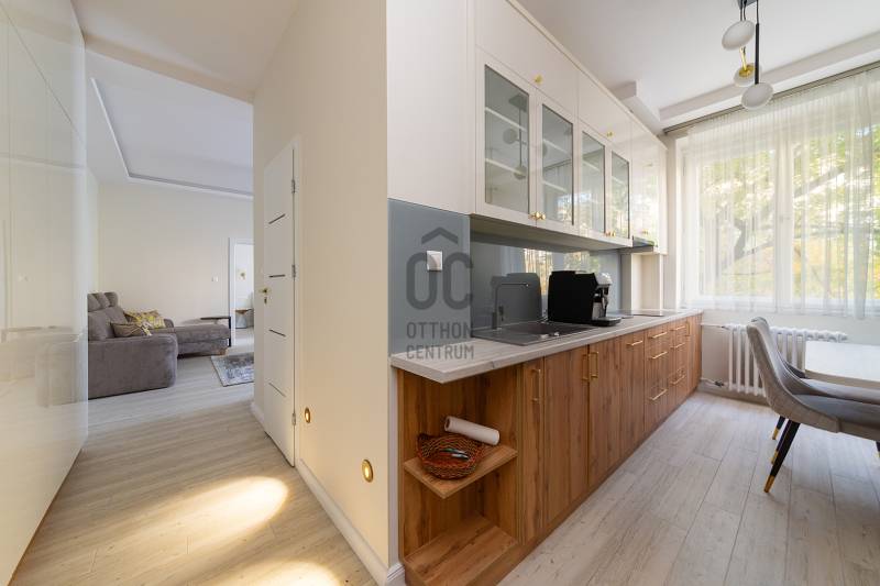 Budapest V. kerületében, Parlament közelében kiadó egy igényesen és frissen felújított, erkélyes lakás egy rendezett, liftes társasházban. A lakás tágas nappaliból, egy hálószobából és egy külön gardróbszobából áll, minden helyiség kiváló állapotban van. Teljes berendezéssel, gépesítéssel kiadó, ide valóban csak a személyes dolgait kell hoznia! Modern konyha, letisztult fürdőszoba, új nyílászárók és igényes burkolatok teszik komfortossá az otthont. Nyugati tájolású, gyönyörű napfényes lakás, alacsony rezsije van. LAKÁS FELSZERELÉSE-új biztonsági ajtó-klímák minden helyiségben- új bútorok, beépített szekrények-kávéfőző- TV- mosógép, szárítógépKIVÁLÓ KÖZLEKEDÉSA környék közlekedése elsőrangú. Autóra nem lesz szüksége, hiszen a teljes belváros gyalogos távolságra elérhető, tömegközlekedés 1-2 percre található:4-6-os villamosM3 metró: Nyugati pályaudvar megállóBuszok: 15, 9, 70, 78, 73INFRASTUKTÚRAKossuth-tér, Duna-part, Parlament néhány perc gyalogos távolságra elérhető. Minden utcasarkon található egy kávézó, étterem, galériák...A helyszín belvárosi, de maga a lakás csendes tájolású!