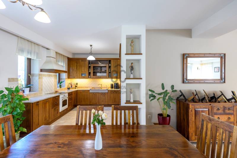 Sopron egyik legkedveltebb részén, az Ágfalvi úti lakóparkban kerül eladásra egy 2010-ben épült, 1238 m²-es telken álló, különleges családi ház, amely az igényesség és a gondosan megtervezett élettér tökéletes példája.A HÁZ JELLEMZŐI- nettó lakóterület: 260 m²- építés éve: 2010- téglaépítésű, minőségi anyagokból- alumínium borítású fa ablakok, tömör kőrisfa beltéri ajtók- kovácsoltvas korlát az emeletre vezető lépcsőn – igazi éke a háznak- fűtés: Vaillant turbó gázkazán, padló- és falfűtés helyiségenként szabályozhatóan- melegvíz ellátás: gázkazán + napkollektor (250 l puffertartály)- nagy teljesítményű klíma az egész ház hűtéséreTÁGAS VILÁGOS BELSŐ TEREKA földszint központja a nappali–étkező–konyha egysége, ahol a természetes fény, a fa meleg tónusai és a finom részletek együttesen teremtenek meghitt, elegáns hangulatot.A tömör fából készült, gránit munkalapos konyhabútor nemcsak stílusos, de a minőség garanciája is.A nappali közvetlen teraszkapcsolattal rendelkezik, így a kert szinte a lakótér folytatása.KÉNYELMES, ÁTGONDOLT EMELETI ELRENDEZÉSAz emeleten HÁROM HÁLÓSZOBA kapott helyet:-a szülői lakrész saját fürdőszobával és gardróbbal,- másik két szoba közös fürdőt használ,- a tágas közlekedő kellemes, világos teret biztosít.ALSÓ SZINT – kényelem és praktikusságA földszinten helyet kapott:- egy vendég- vagy dolgozószoba,- egy tágas háztartási helyiség szaunával, tusolóval és WC-vel,- valamint egy duplagarázs elektromos garázskapukkal.Minden itt van, ami a mindennapi kényelmet szolgálja – logikus elrendezésben, minőségi kivitelezésben.A KERT - MAGA A NYUGALOMAz 1238 m²-es, parkosított kert gondosan megkomponált:- robotfűnyíró,- Wellis jakuzzi - barabás téglából épített grillező és kerti konyha,- árnyas pihenősarok, ahol a zöld növények között valódi kikapcsolódás várja.- kerti faházEz a kert nem csupán szép — élettér, ahol minden nap egy kicsit nyaralás.Egy ház, ahol a részletek számítanak.Ez az otthon nem hivalkodó, hanem elegánsan kifinomult.Minden anyag, minden vonal és minden szín azt sugallja:itt a nyugalom, a minőség és a természet közelsége egyensúlyban van.ELHELYEZKEDÉSKönnyen megközelíthető kertvárosi környezetA város infrastruktúrája, iskolák, bevásárlási lehetőségek és zöld területek egyaránt elérhetők.KÖLTÖZÉSA költözés gyorsan megoldható.Ha egy olyan otthont keres, amely egyszerre sugároz eleganciát, kényelmet és természetes harmóniát,akkor ez a ház Sopronban, az Ágfalvi úti lakóparkban Önre vár.Hitelre van szüksége?Az Otthon Centrum az ország egyik legnagyobb és legmegbízhatóbb hitelközvetítőjeként, teljes körű és díjmentes hitelügyintézéssel, biztosításkötéssel áll rendelkezésére!Kérje személyre szabott ajánlatunkat Kollégáinktól!