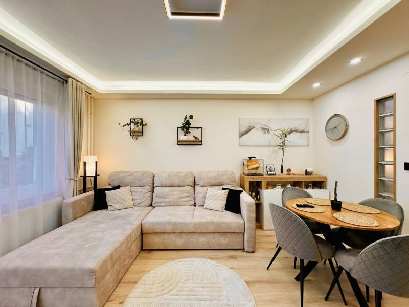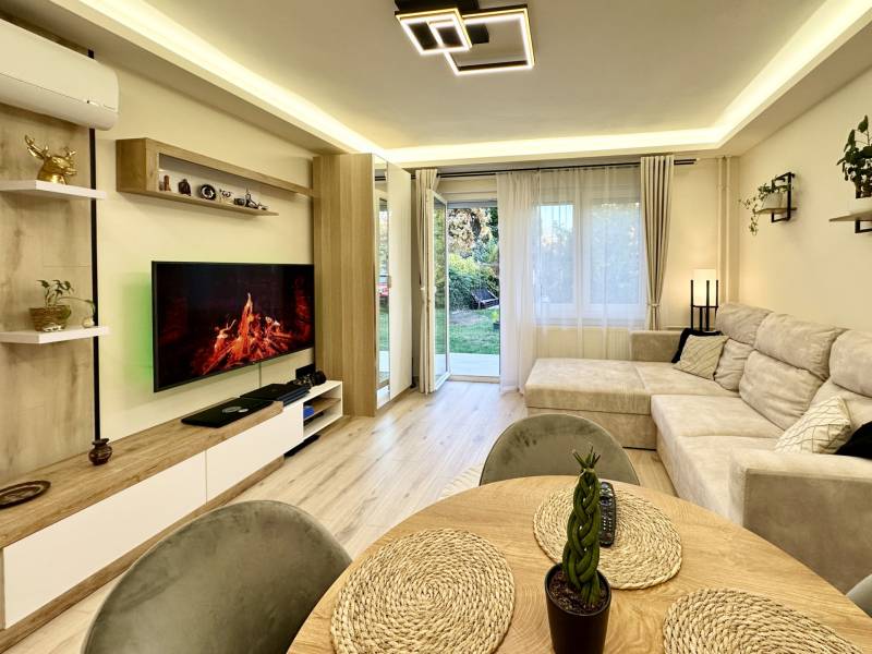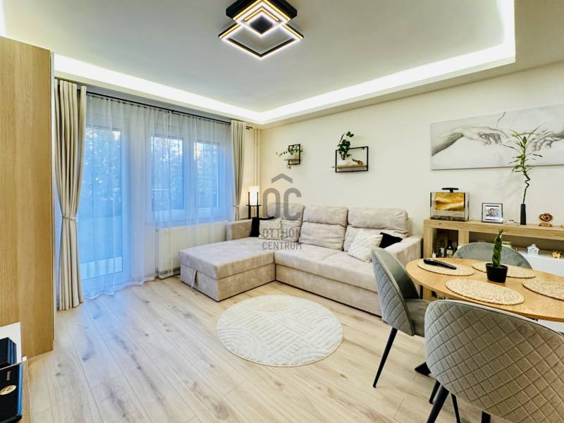 A XI. kerület egyik legkedveltebb részén, a Beregszász úton, a metrótól mindössze 5 perc sétára eladó ez a brutto 31 nm-es, 1 szobás, KERTKAPCSOLATOS, TERASZOS garzon, ahol a kényelmet és a praktikusságot tökéletes harmóniában találod.A meghirdetett ár tartalmazza a saját udvari autóbeállót, a 2 nm-es tárolót, valamint a gondozott közös kert használatát is. Csak beköltözni kell!!!A lakás teljesen berendezve és gépesítve eladó – benne marad a kihúzható kanapéágy, étkezőasztal székekkel, beépített konyhabútor Electrolux gépekkel (indukciós főzőlap, sütő, hűtő, páraelszívó, mosogatógép), szekrények, valamint Midea hűtő-fűtő KLÍMA és ELEKTROMOS REDŐNYÖK is.A 4 nm-es terasz csendes, zöld udvarra néz – igazi nyugalom a város közepén. A kétszintes, 8 lakásos társasház rendezett, barátságos lakóközösséggel, 615 nm-es telken.Fűtés: házközpontiKözös költség: 21.000 Ft/hó (felújítási alap, fűtés, szemét, kertész)Rezsi: kb. 10.000 Ft/hóKiváló elhelyezkedés: Lidl 1 perc, M4 metró és több buszjárat 5 perc, a közelben orvosi rendelő, jóga stúdió, iskola és óvoda.Ideális választás befektetésnek, első lakásnak vagy bárkinek, aki modern, igényes és azonnal költözhető otthont keres Kelenföld egyik legjobb részén.Egyedi igényekre szabott lakáshitelekkel állunk rendelkezésére.Bankfüggetlen Hitelcentrumunk az országban elérhető összes bank és hitelintézet ajánlatát versenyezteti az Ön számára díjmentesen.Munkatársaink nagy szakmai tapasztalattal, teljes körű CSOK PLUSZ és OTTHON START PROGRAM ügyintézéssel várják Önt előre egyeztetett időpontban akár a normál munkaidő után is.