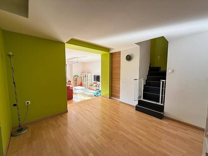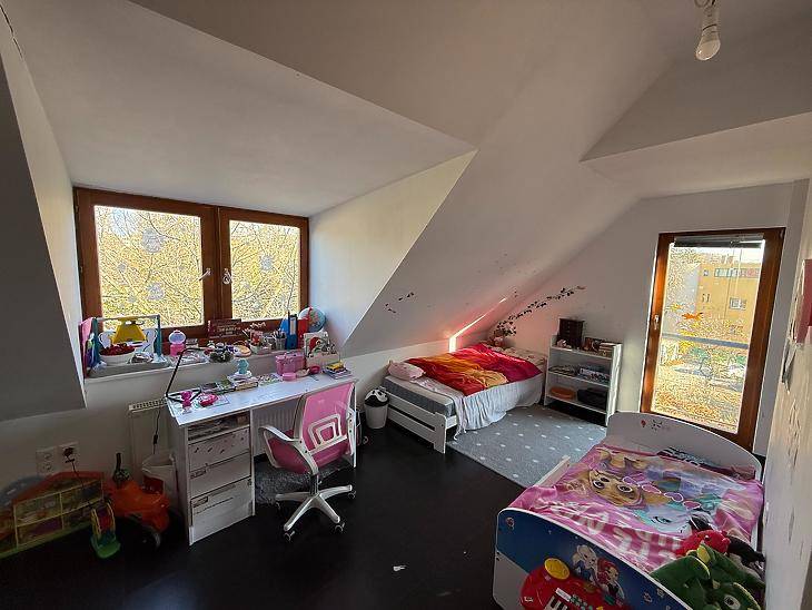Kizárólag Irodánk kínálatában!Eladásra kínálunk egy csendes, jó állapotú, nettó 159 nm-es + 15 nm-es teraszos, belső kétszintes, világos, panorámás lakást Németvölgy frekventált részén, a Fürj utcában.A szigetelt ház 2 lakásos, 3 szintes, amelyből az eladásra kínált lakás a felső két szinten helyezkedik el. A lakás 6 szobával rendelkezik, amelyből az első emeleten található egy nappali + 2 szoba, a többi szoba a második emeleten helyezkedik el.Az első emeleten található egy 4 nm-es és egy 11 nm-es terasz (utóbbi bővíthető igény szerint), valamint a 2. emeleten két franciaerkély is.Belmagassága 266 cm.A lakás külön bejáraton át megközelíthető a kertből, illetve a garázsból is.Tartozik hozzá egy kétbeállásos garázs, mely 16 nm, valamint egy udvari beálló. Ezeket kötelező megvásárolni, értékük összesen 20M Ft.A ház kertje közös használatú.Elhelyezkedése kiváló: a közelben bevásárlási lehetőségek, iskolák, óvodák, parkok és tömegközlekedési megállók találhatók. A környék ideális mindazoknak, akik a város közelségét, de a zöld, csendes környezetet részesítik előnyben.Kérdés esetén keressen minket bizalommal!Irodánk ingyenes hiteltanácsadással áll ügyfeleink rendelkezésére.Vevőink számára a közvetítés díjmentes.A hirdetésben szereplő adatok tájékoztató jellegűek.