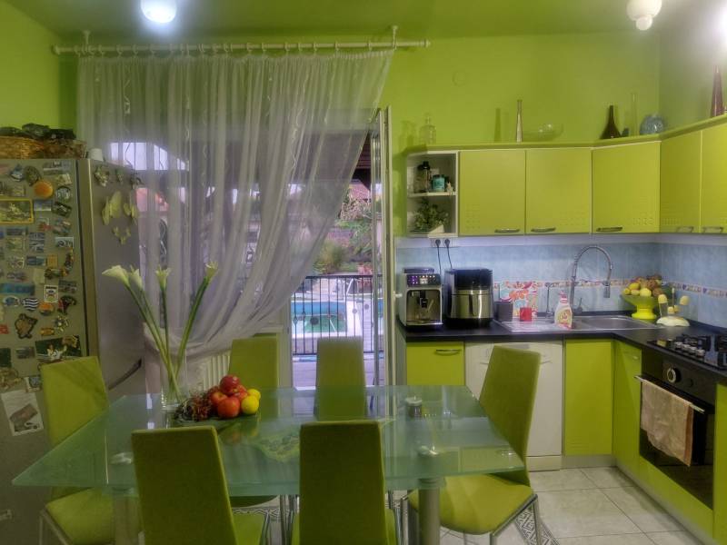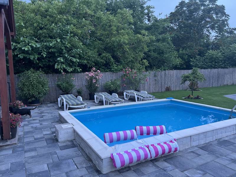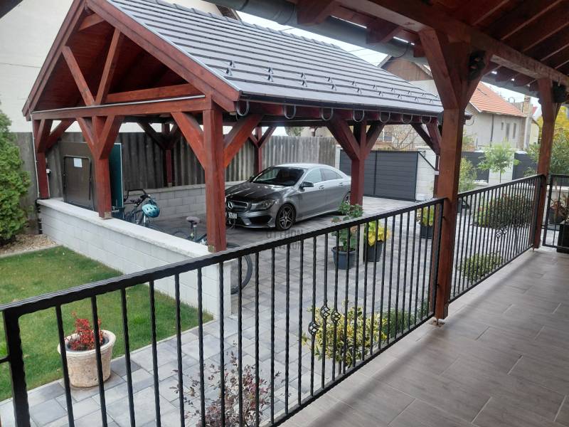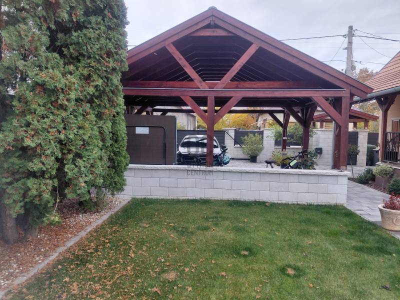 Mediterrán kert saját medencével – nyugalom és kényelem Taksonyban, Dunaharasztitól pár percre!Képzeld el, hogy minden reggel egy mediterrán kert látványa fogad: csillogó medence, illatozó növények, árnyas pihenőrész és egy hangulatos kerti sütögető. Egy hely, ahol tényleg lelassulhatsz – mégis közel maradsz a mindennapi városi élethez.Ez a 127 m²-es, kétszintes, téglaépítésű, szigetelt családi ház egy csodásan parkosított 811 m²-es telken vár rád. Az emelet 2024-ben teljes felújítást kapott, így az ingatlanba csak be kell költöznöd.A ház elosztása:Földszint:• előszoba• tágas nappali• konyha + étkező• hálószoba• fürdőszoba• lépcső alatti gardróbEmelet:• két szoba• közlekedő• fürdőszoba• gardróbVilágos terek, jól kihasznált alaprajz, kényelmes családi életre tervezve.A kert – a telek igazi ékszere, mediterrán oázis:• saját medence• halastó• automata öntözőrendszer• kerti sütögető• gondozott mediterrán növényzet• árnyékos pihenőrész• körbeölelő, hangulatos terasz 16,7 m²-es pince A kert végében egy 8 m²-es tároló vagy vállalkozásra is alkalmas helyiség.A ház előtt 2024-ben készült automata kapuval ellátott dupla autóbeálló és térkövezett parkoló.A telefonról vezérelhető kamerarendszer gondoskodik a modern biztonságról.Elhelyezkedés és közlekedés – minden közel van, mégis csendes:• Taksony egyik nyugodt, rendezett utcájában• Dunaharaszti pár perc autóval• Budapest autóval 15–20 perc• Közeli HÉV és buszjáratok• Iskola, óvoda, rendelő, boltok, gyógyszertár, sportpálya, éttermek – minden a közelbenEz az ingatlan több mint egy ház: egy saját mediterrán oázis, ahol minden adott a kikapcsolódáshoz, a baráti és családi pillanatokhoz, és a nyugodt, kényelmes mindennapokhoz.Szeretnéd élőben is átélni a hangulatát? Szívesen mutatom!