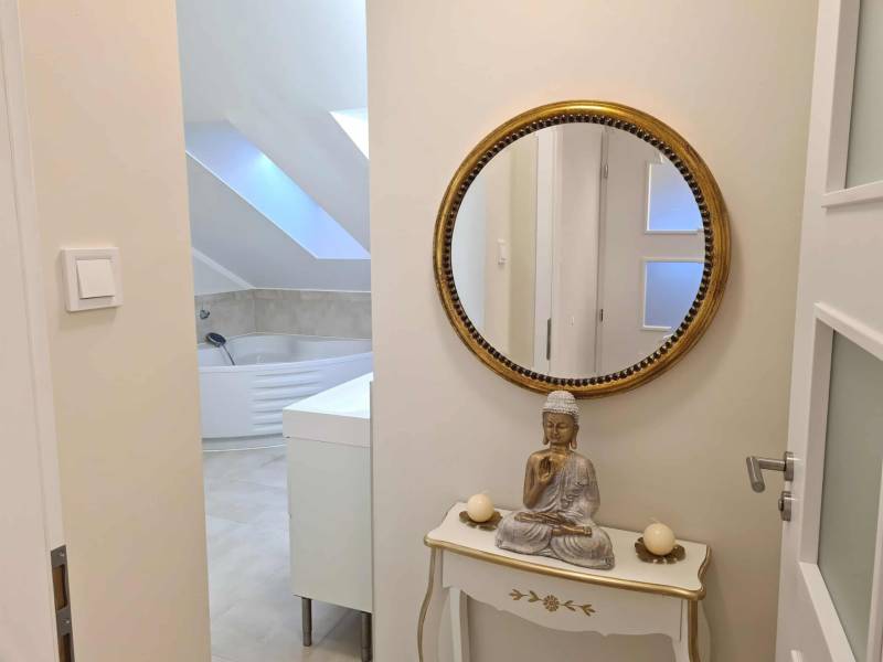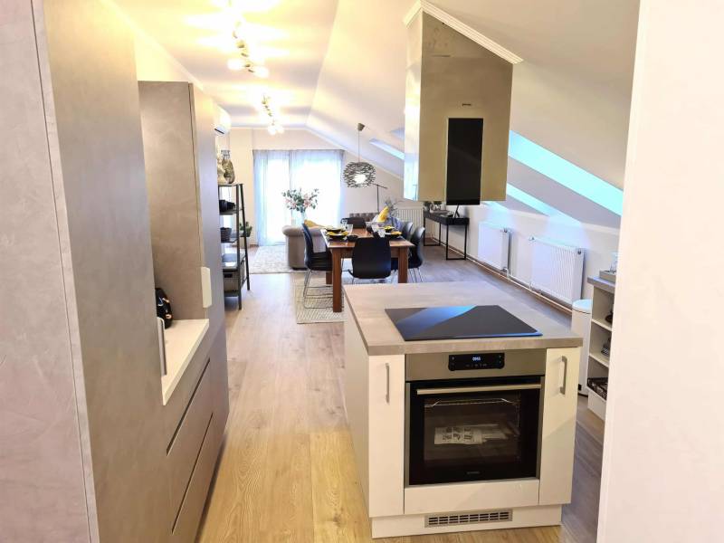 Ajkán, csendes és nyugodt környezetben eladó egy tágas, 103 nm-es tetőtéri lakás – tudatos, fiatal vásárlóknak kiváló választás.Az ingatlan egyedi megoldásokkal és minőségi kivitelezéssel készült, a mindennapi használhatóságot és a praktikus élettereket helyezve fókuszba.2020-ban egy időben, a lépcsőházban megtörtént a víz, villany, fűtés, csatornahálózat cseréje.Főbb jellemzők:- Alapterület: nettó 103 nm, bruttó 147 nm, tetőtéri kialakítás- Elrendezés: 3 hálószoba, 2 fürdőszoba, konyha-nappali, gardrób- Fűtés: távhő egyedi mérés nélkül, automata légtelenítőkkel- Hűtés: 4 db MIDEA klíma, melyek távolról is vezérelhetők- Két helyrajzi számon található az ingatlan (68 nm és 79 nm)- Külön helyrajzi számon, saját, 12 nm-es tároló tartozik a lakáshoz- Finanszírozás: CSOK-ra és egyéb egyedi kedvezményekre alkalmas- Tulajdoni viszonyok: rendezettek, teljesen tehermentesA lakás kiváló elosztású, világos: a három hálószoba és a két fürdőszoba a kényelmes együttélést támogatja, a konyha-nappali funkcionális központot ad a mindennapokhoz.A gardrób rendezett tárolási lehetőséget biztosít, a klíma a nyári komfortot növeli, a távhő pedig megbízható fűtést nyújt.A két külön helyrajzi számú kialakítás különválasztási lehetőséget teremt, ami a használat és a tervezés szempontjából rugalmas megoldás.Fiataloknak, első otthont keresőknek praktikus és méretében is versenyképes alternatíva, ahol a kész műszaki megoldások azonnal élhető tereket kínálnak.Kizárólag Otthon Centrum kínálatában érhető el.Hívjon mielőbb, és szakértői támogatással végig kísérem a biztonságos vásárlási folyamatot!Amennyiben felkeltette érdeklődésedet az ingatlan, kérlek, keress a megadott elérhetőségeken!Irodánk teljes körű HITEL-, BABAVÁRÓ és CSOK ügyintézéssel, biztosítással, energetikai tanúsítvány készítésével, valamint megbízható ügyvédi háttérrel segíti Ügyfeleit.#OtthonCentrum #lakás #ház #eladás #vétel #Veszprém #OC #Ingatlanadásvétel #eladva #Veszprémvármegye #Ingatlanközvetítő #Otthonszakértő #Albérlet #Ingatlaniroda #ingatlanos #szép #realestate #újlakás #újotthon #állás #álláskeresés #panel #panellakas #társasház #munka #instagood #családiház #szépházak #siker #homestaging #eladólakás #otthon #ingatlan #eladóingatlan #munkalehetőség #karrier