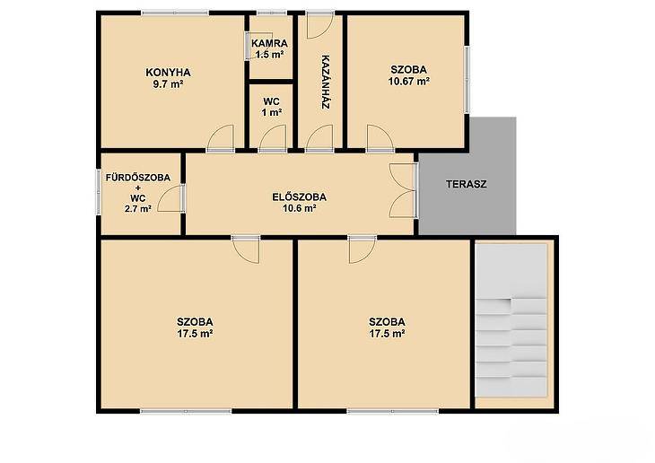 Gödöllő, Kertváros részén eladó egy 200 m²-es, két szinten elhelyezkedő, közepes állapotú családi ház, 698 m²-es telekkel és fedett kocsibeállóval.Főbb jellemzők:A ház téglából épült, beton alappal és betonfödémmel. A tető 15 cm kőzetgyapottal szigetelt.Az ablakok fából készültek, dupla üvegezésűek, belső reluxával.A ház fűtését gázkazán és egy vegyes tüzelésű kazán biztosítja, illetve az emeleten egy hűtő–fűtő klíma is felszerelésre került.A meleg vizet villanybojler biztosítja.A szobákban parketta, míg a többi helyiségben járólap burkolat található.Az emelethez külső, különálló lépcső lett kialakítva, így kétgenerációs házként is funkcionálhat.Elrendezés:Földszint: 3 szoba, konyha, kamra, kádas fürdőszoba, külön mellékhelyiség, előszoba, közlekedő.Emelet: 2 szoba, nappali, étkezős konyha, kádas fürdőszoba, mellékhelyiség.Környék:A környék csendes, rendezett, kertvárosias, mégis közel található a város központjához, a boltokhoz, iskolákhoz és a tömegközlekedéshez.A közelben számos bevásárlási lehetőség, gyógyszertár, bölcsőde, óvoda, iskola és játszótér található.Az M3-as autópálya néhány perc alatt megközelíthető. A közelben az 5, 45, 4, 4A és 24-es helyi buszjáratok érhetők el.Finanszírozás:Az ingatlan banki finanszírozással is megvásárolható, melyben irodánk ingyenes tanácsadással áll rendelkezésükre.Irányár: 91,9 M FtVevőink részére a közvetítés díjtalan.A hirdetésben szereplő adatok tájékoztató jellegűek.