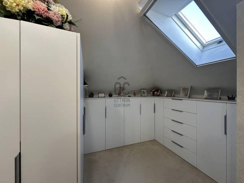 Exkluzív, igényesen megépített ikerházi otthon eladó – csendes környezetben, mégis Budapest közvetlen közelében.Eladásra kínálunk egy kivételes minőségben megépített ikerházi ingatlant, amelyet a tulajdonos saját célra építette, így minden részletében a gondosság, a tartósság és a prémium műszaki tartalom tükröződik.Az ingatlan csendes, rendezett környéken található, mindössze 3 perc autóútra Budapesttől, valamint közvetlen közel az M0-ás autóúthoz, ami gyors és kényelmes közlekedést biztosít.A modern hőszivattyús rendszernek köszönhetően az otthon energiatakarékosan fűthető és hűthető, a földszinten elhelyezett elegáns kandalló pedig kifinomult hangulatot teremt. A rezsiköltségek optimalizálását a rendelkezésre álló H tarifa tovább erősíti.A ház magas műszaki színvonalát a 38-as Porotherm tégla, az emeleten található 5 cm szigetelés, valamint a dupla betonfödém biztosítja, amely kiemelkedő stabilitást és kiváló hő- és hangszigetelést nyújt.A gondosan parkosított kert nyugodt, zöld környezetet kínál, és helyet kapott benne egy praktikus kerti tároló is. Az autók számára két nyitott beálló és egy garázs áll rendelkezésre, így több jármű is kényelmesen elhelyezhető.Az ingatlan belső tereit a kényelem és a luxus iránti igény határozza meg: az emeleten egy exkluzív szauna, a földszinten pedig egy külön konditerem teszi teljessé a mindennapi komfortot.Főbb jellemzők elegáns áttekintése:•Csendes, rendezett környék•Budapest autóval mindössze 3 perc•M0 közvetlen közelsége•Ikerház, igényes kivitelezéssel•Önrészből építtetett, prémium minőség•Hőszivattyús fűtés és hűtés•Kandalló a földszinten•H tarifa•38-as Porotherm falazat•5 cm szigetelés az emeleten•Dupla beton födém•Parkosított, ápolt kert•Kültéri tároló•Két nyitott beálló + garázs•Emeletten exkluzív szauna•Földszinten konditerem•Harmonikusan kialakított, kellemes, modern otthon