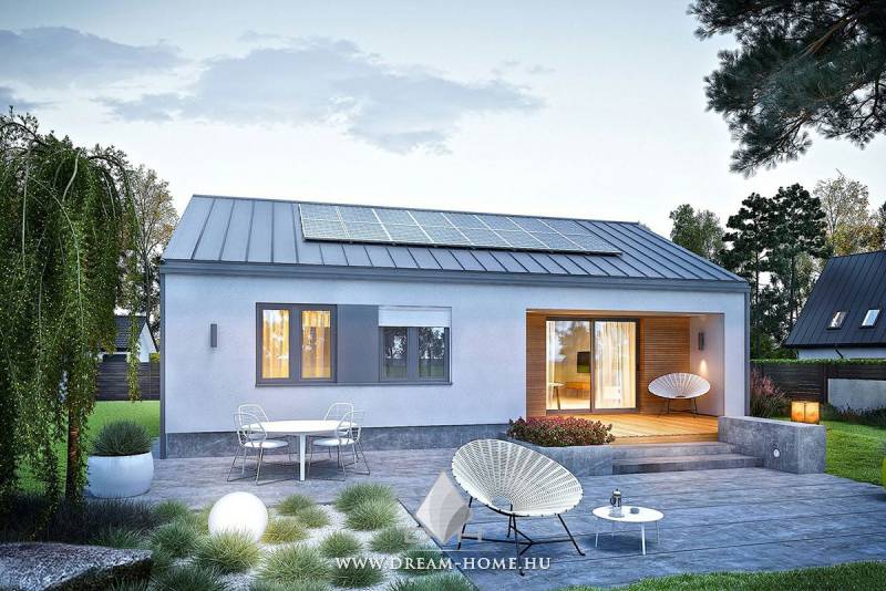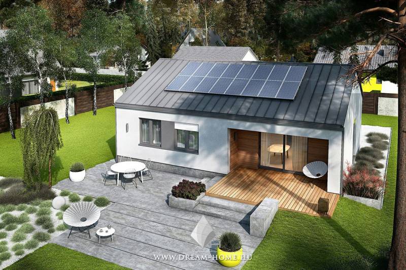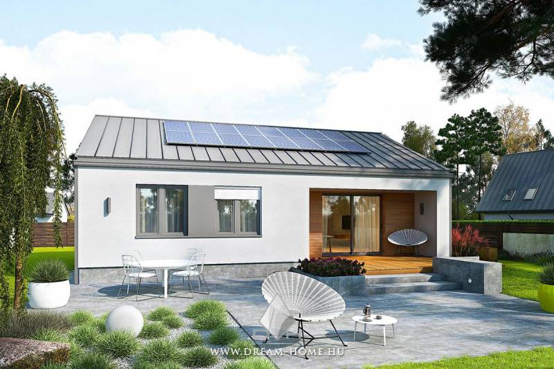 Átgondolt, gazdaságos, napelemes 98 nm-es ház eladó!A letisztult Dream-Home “Eco Plus” 98,63 nm-es, gazdaságos, modern és nagyon kényelmes ház 854 nm telken várja első tulajdonosát!Az átgondolt tervezés gazdaságos fenntarthatóságot és igazi kényelmet biztosít mindenki számára. A ház időtlen formájának köszönhetően bármely térbe remekül illeszkedik. A praktikus elrendezésű tereket egy fedett terasz köti harmonikusan össze a kerttel. Tökéletes választás mindenki számára, akik egyszerűségre, funkcionalitásra s ízlésességre vágynak.A ház bruttó 98,63 nm melyhez egy 4 nm-es fedett-és egy 12 nm-es fedetlen terasz is tartozik. A nappali + 3 hálós otthonhoz egy a 2022-es energetikai szabványoknak megfelelő 3 kw-os napelem is tartozik, mely benne foglaltatik a ház árában! A lakók kényelmét szolgálja egy nagyobb méretű gardrób is, mely igény esetén szobává alakítható!A házat Kecskemét egyik legújabb, igen kedvelt utcájába, Katonatelepen található. Remek infrastruktúra, jó óvoda, iskola, sportpálya található a közelben, s a belvárosból busszal könnyen megközelíthető.A házat ajánljuk első lakás vásárlóknak, idősebbeknek, vagy 1-3 gyermekkel rendelkező családoknak, illetve pároknak vagy egyedülállóknak!Miért költözne lakásba, ha lakás árán csodás környezetben nagy teraszos kertes ház is az Öné lehet??? Döntsön okosan, használja ki az utolsó lehetőségeket!KIZÁRÓLAG NÁLUNK! – BABAVÁRÓ hitel is IGÉNYELHETŐ HOZZÁ!Az ár tartalmazza a teljes ház árát kulcsra kész állapotban, belül burkolatokkal, szaniterekkel, a napelemeket melyek a 2021-es energetikai szabványnak megfelelnek. illetve tartalmazza a telek árát is!Az ár nem tartalmazza a konyhabútor árát!Használja ki Ön is a Babaváró hitel nyújtotta lehetőségeket! Keressen ingyenes tanácsadásért hogy megtudjuk pontosan milyen lehetőségei vannak az otthon teremtésre!Ha a neten nem találja álmai otthonát, ne aggódjon, mi megtaláljuk Önnek! Amennyiben finanszírozásra is szüksége van a vásárláshoz, vagy ÁLLAMI TÁMOGATÁST is szeretne kapni, esetleg CSOK-ot vagy BABAVÁRÓ-t igényelne, ne aggódjon, BANKCENTRUMUNK 30 bank ajánlatából kiválasztja Önnek a LEGJOBB megoldást! Ami megoldható azt mi megoldjuk!Ház mérete:bruttó 98,63 nm+ 4 nm fedett és 12 nm fedetlen teraszSzobák száma: Nappali + 3 háló (igény esetén nappali + 4 halóvá alakítható!)Telek: 854 nm(Irodai azonosító: KMUG1096)