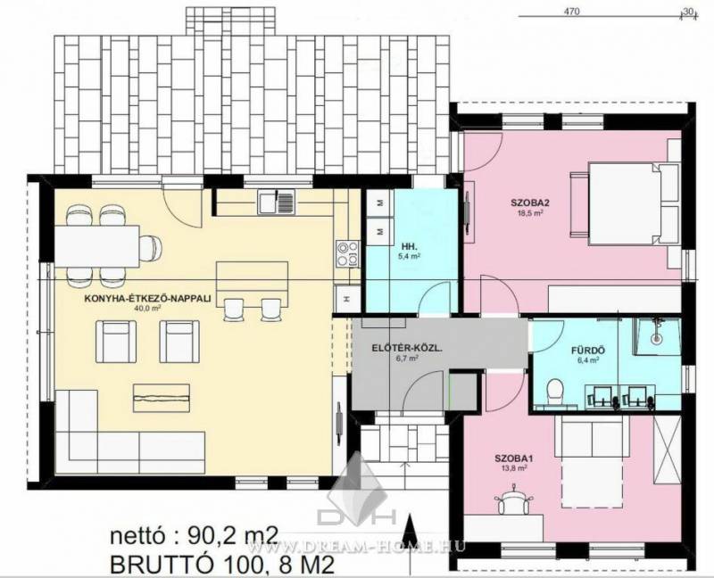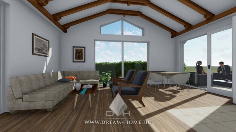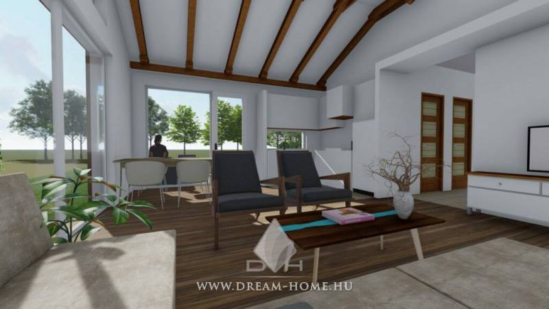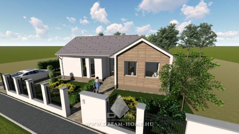 Költözzön Ön is az Irsai Lakóparkba!A Dream-Home Irsai Lakópark egy már szépen kiépült, új házakkal beépített területen található, így megspórolja azt a néhány évet amellyel egy új lakópark kialakításakor számolni kell.Házaink olyan Zöld Otthonok, melyeket úgy terveztük, hogy minimális rezsi költségből fenntarthatóak legyenek, napelemmel és igény esetén hőszivattyúval is ellátjuk. Élvezze a kialakult környezet előnyeit, kösse le új házát még ma!A képeken látható 101nm-es, 2+1 szobás –különleges építészeti megoldásokkal- 500nm-es ASZFALTOZOTT ÚTON LÉVŐ telken épített családi ház, 2023-as átadással kulcsrakészen még az Öné lehet!A nappali magas ablakán beáramló fény beragyogja a teljes teret, így ezt az otthont a légiesség, természetesség szerelmeseinek ajánljuk! A ház tervezésekor a szabadság, a korlátok lebontása volt a cél, hogy hazatérve ne érezzük bezártnak magunkat, hanem egyesülhessünk a természettel!Az ár tartalmazza: a 500 nm-es közművesített telek árát, a teljes tervdokumentációt, és a ház kulcsrakész kivitelezését.A belső elrendezés igény szerint, statikai korlátokon belül árváltozás nélkül módosítható – ennek részleteit személyesen, vagy telefonon pontosítsuk!Hívjon most!Lévay MártonprojektmenedzserIrodai azonosító: KMUT1116