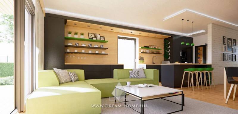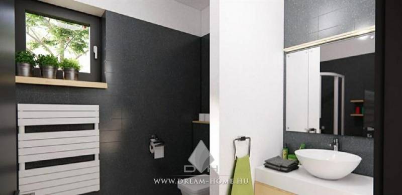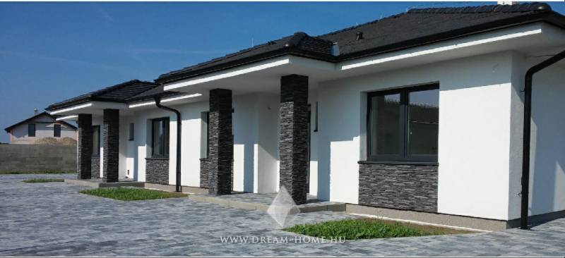 A belvárostól mindössze 3 km-re élvezheti a családi ház nyújtotta kényelmet, és egyben a város közelségét, valamint az autópálya is 5 percen belül elérhető.3 vagy 4 szoba+nappali kialakítással nettó 91m2-en.Az ár tartalmazza a telek, a teljes kivitelezést kulcsrakész átadással, az általunk kínált műszaki tartalommal, modern hőszivattyús fűtéssel, kivitelezési idő 12 hónap.Az ár nem tartalmazza a konyhabútor és a lámpatestek árát.Hívjon, hogy le ne maradjon, legyen gyorsabb másoknál!Horváth JózsefProjekt managerMűszaki leírás:Alapozás: 40cm x 90 cm-es sávalap 2 x 3 sor betonvassal kengyelezve.Vasalás: 3 x 12-es két-két oldali fővas, 25 centiméterenként 8-as kengyelvas.Lábazat: 30-as zsalukő 1 sor, 10 cm vastag zárt lábazati szigeteléssel.Teherhordó falazat: Wienerberger Porotherm 30 X-Therm tégla 11 sor magasságban.Válaszfal: Hangcsillapított 10 cm vastag gipszkarton válaszfal Isover Akusto hangszigetelő betéttel.Tetőszerkezet: Szeglemezes tetőszerkezet méretpontosan előregyártva gomba és lángmentesítetten impregnálva fa födémszerkezetre függesztett gipszkarton borítás.Tetőhéjazat: Bramac Romai Novo beton hullámcserép rendszer cseppentőlemezes kialakítással 10 féle színben. Egyedi igény alapján más típusú cserép is választható.Födém: Láng és gombamentesített 15-20 x 5-ös pallófödém szerkezet. A 12,5 mm vastag tűzgátló gipszkarton mennyezet fogadását gipszkarton fém profilszerkezet biztosítja, technológiai hőtükrös párazáró rendszerfóliával.Födémszigetelés: A gerendák közé 25 cm német befújt cellulóz szigetelés.Belső falfelületek: Tartó és válaszfalakon belső gépi mészhomok vakolás, gletteléssel becsiszolva, két rétegű festés választható színben.Homlokzati hőszigetelés: 15 cm vastag Austrotherm EPS 80 homlokzati hőszigetelés hálózva, glettelve, 10 cm-es XPS zártcellás lábazati szigtelés.Külső homlokzati felületkezelés: Baumit Silicon 1,5 mm-es kapart nemes-vakolati rendszer.Külső lábazat felületképzése: Baumit műgyanta alapú gyöngykavics lábazat.Homlokzati nyílászárók: Marshall Gealan M9000 (csúcskategória) típusú műanyag profilú, fémbetétes, fehér színű, passzívház minősítéssel rendelkező 3 üvegrétegű argongáz töltésű 6 légkamrás ablakok. Gyárilag beépített rés szellőzéssel, hibás működtetés gátlóval, betörés biztos, gombafejes zárócsappal. Az ajánlat maximum 210 cm magas bukó-, és nyíló nyílászárókat foglal magába.Beltéri ajtók: Jaf-Holz, osztrák, utólag beépíthető laminált dekor-fóliás teli-ajtó kilinccsel 75.000.-Ft értékben.Bejárati ajtó: Marshall Gealan M9000 profilból, műanyag 5 pontos biztonsági zárrendszerű ajtó sik stadúr-betétlemezzel br.: 200.000.-Ft értékben.Gépészet: Levegő-víz hőszivattyú technológia: Fisher Split levegő-víz hőszivattyú, 120L -es (boiler) használati meleg-víz tárolóval, digitális vezérléssel. A rendszer alkalmas a ház hűtésére is.Gépészeti kiegészítő rendszerelemek: Schell sarokszelepek, Herz-Ipapress fali korongok, bronzházas mechanikai bejövő víz szűrőrendszer, bronzházas mágneses iszapleválasztó, rozsdamentes acél hidraulikus váltó, fokozatmentes indítású Grundfos Alfa keringetőszivattyúk rozsdamentes acél tömeg-áramszabályzós fűtési osztó-gyűjtő modulok. (minden kör külön szabályozható, padlófűtés esetén az aljzatbeton alatt nincsenek toldások.Szaniterek (kád + zuhanykabin + WC tartály + csaptelepek): 1.000.000.-Ft bruttó keretösszegig.Hidegburkolat: 8500 Ft/m2-ig választhatóMelegburkolat: 6000 Ft/m2-ig választható