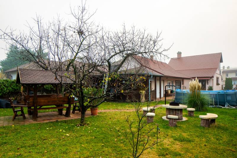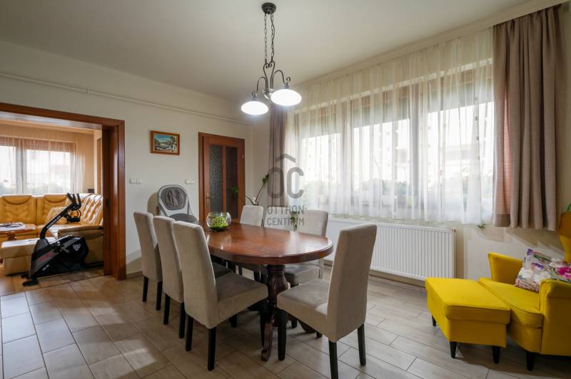 Hajdúszoboszló frekventált, mégis csendes, családias övezetében eladó egy kiváló állapotú, tágas, 2 szintes családi ház, 740 m²-es, gondozott, parkosított telken.A ház 1985-ben épült, majd teljes körű felújítást kapott, amely során modern, prémium anyagokkal és igényes kivitelezéssel újult meg kívül-belül.Felújítás tartalma:- új tetőszerkezet- korszerű fűtésrendszer és gépészet- modern, minőségi burkolatok- teljesen új konyha és fürdőszobák- új, igényesen kialakított kerítés- 3 rétegű, hőszigetelt nyílászárók- cirkófűtés + hűtő-fűtő klímaA felújítás óta az ingatlan folyamatosan karbantartott, így azonnal költözhető, rejtett költségek nélkül.Helyiségek elosztása:Földszint: világos nappali, hálószoba, amerikai konyha étkezővel, kamra, gardrób, fürdőszoba, külön WC, előszoba, tároló.Emelet: három különnyíló hálószoba, gardrób, fürdőszoba, erkély.Különálló melléképület 73 m²-es – rengeteg lehetőséggel:– két garázs,– nyárikonyha,– kerékpártároló,– WC,– valamint egy 17 m²-es fedett kerti kiülő.Akár vendégháznak, otthoni vállalkozásnak vagy második generációnak is átalakítható.A kert parkosított, rendezett, igazi nyugalomsziget – tökéletes családi és baráti összejövetelekhez.Miért tökéletes választás?- prémium minőségű felújítás- nagy, élhető terek- rendezett, gondozott kert- melléképület rengeteg felhasználási lehetőséggel- dupla garázs- csendes, mégis központi elhelyezkedés- azonnal költözhető állapotTökéletes nagyobb családoknak, két generáció számára vagy akár vállalkozásra is!Hívjon, és nézze meg mielőbb ezt az igazán kivételes lehetőséget!