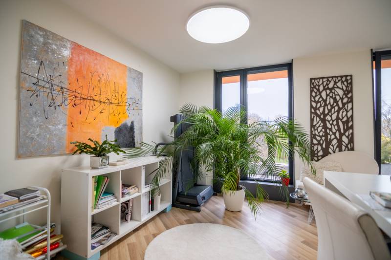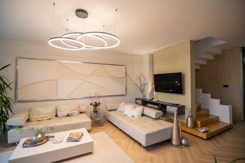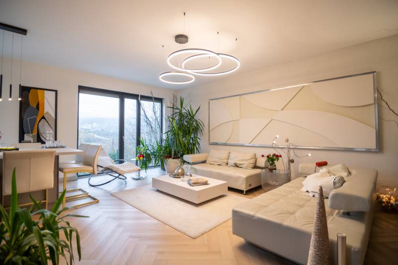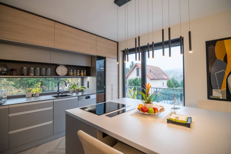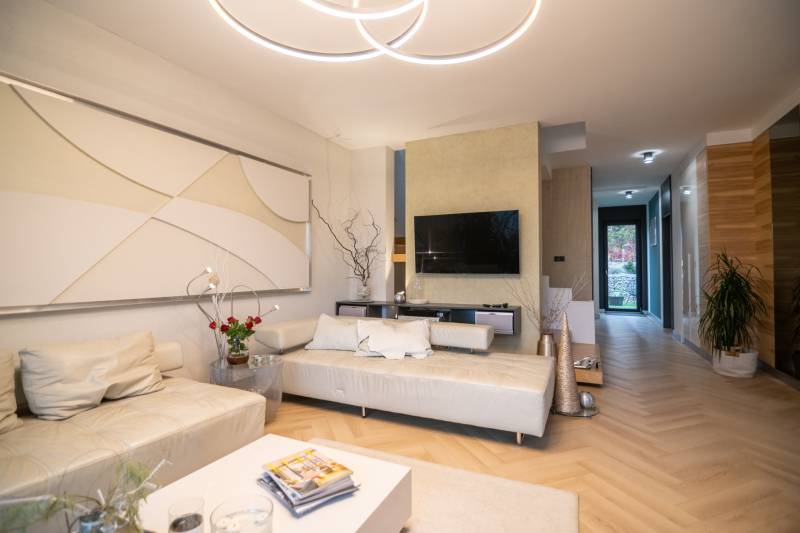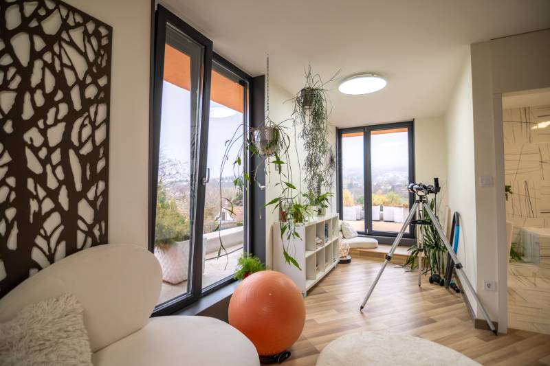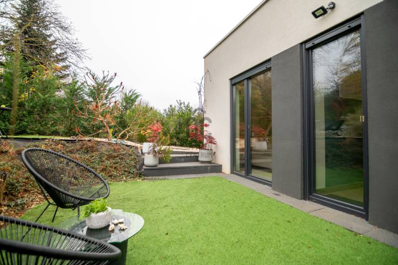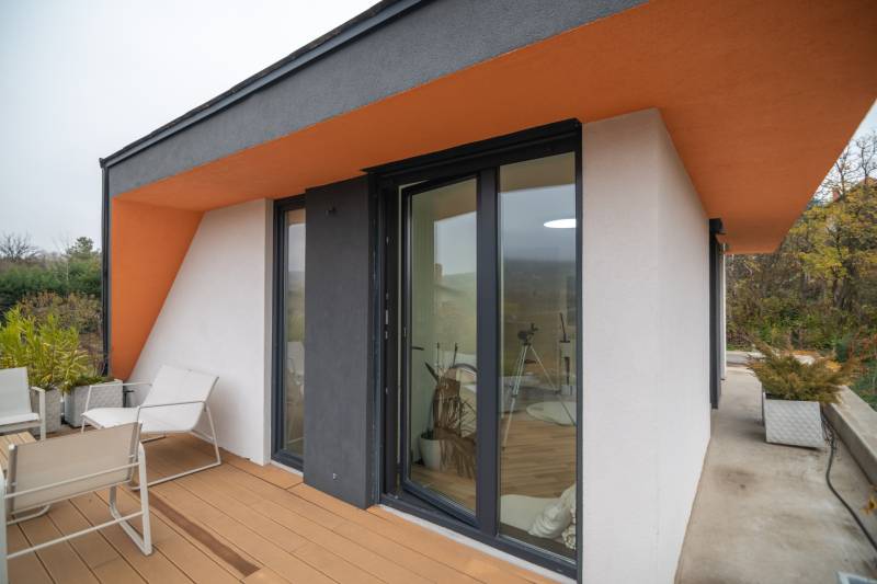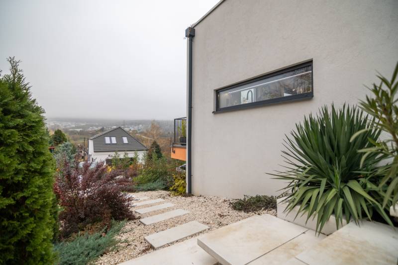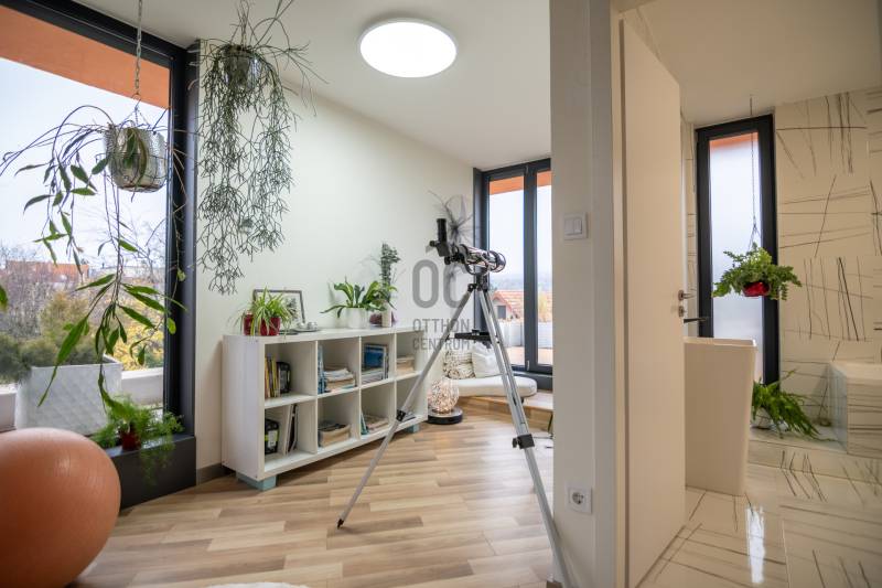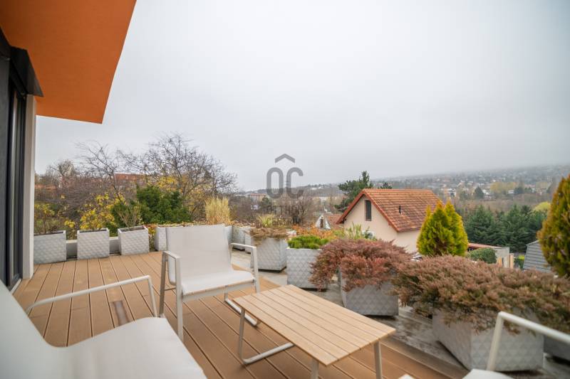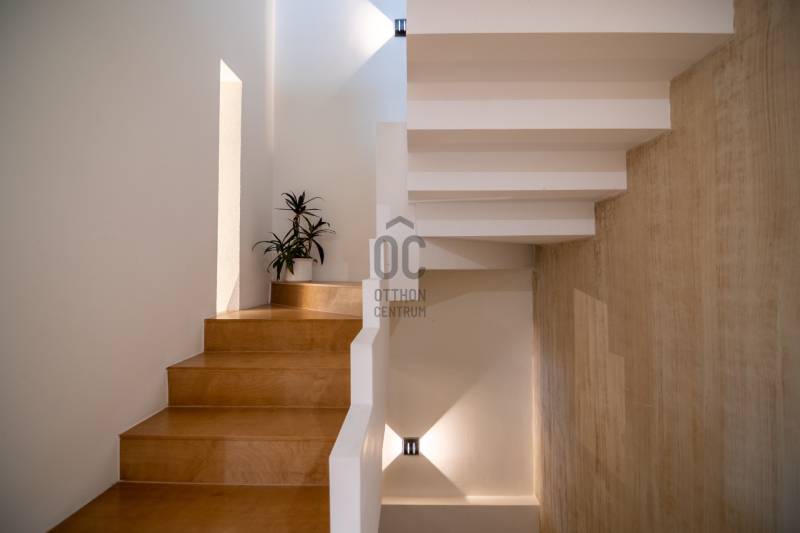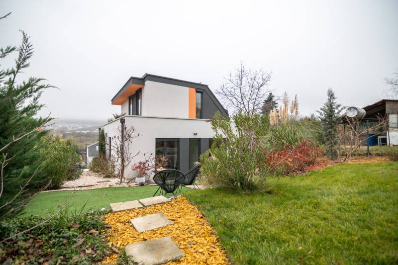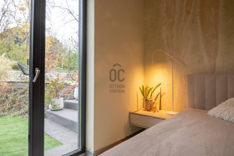A III. kerület csendes, zöldövezeti részén, Ürömhegyen kínálunk eladásra egy minden részletében átgondolt, egyedi tervezésű otthont. A modern építészet és a természetközeli életstílus tökéletes harmóniában találkozik ebben a házban, amelyet kiemelkedő szakmai referenciákkal rendelkező belsőépítész alkotott meg.A ház egy rézsűs telek felső részén áll, így a panoráma és a fény egyszerre része a mindennapoknak. A letisztult formák, természetes anyagok és a napfényes terek elegáns, mégis otthonos hangulatot teremtenek.FŐBB JELLEMZŐK- Prokoncept építési rendszer, német fa szerkezeti elemek- A+ energetikai besorolás, levegő-víz hőszivattyús rendszer- Padlófűtés, mennyezethűtés-fűtés, hővisszanyerős szellőztetés előkészítve- Rehau nyílászárók, mindenhol motoros redőnyök- 20 millió Ft értékű egyedi konyha és beépített bútorzat- Beépített gépek: AEG főzőlap, Whirlpool sütő és mikro, Gorenje hűtő- Klarstein elszívó, fekete csaptelepek, screenüvegek a vizes helyiségekben- Jacuzzi-előkészítés a panorámás tetőteraszon- 2 autós garázs, elektromos töltő és napelem-előkészítésKERT ÉS KÜLSŐ TEREKA ház körül kialakított, mintegy 400 nm-es kert a természetes anyagokra és a rendezettségre épül.A geotextíliás alapozás és a dísznövényeknek köszönhetően a kert szinte gondozásmentes, mégis élő, harmonikus zöldfelületet kínál.A teraszról a panoráma a főszereplő: az előtető véd az esőtől és a naptól, a csöpögő rendszer pedig automatikusan öntözi a növényeket.A tér kialakítása lehetővé teszi jacuzzi vagy kisebb medence elhelyezését is – a nyugalom és a kényelem kompromisszumok nélkül adott.LOKÁCIÓ ÉS KÖZLEKEDÉS- 218-as buszmegálló pár lépésre található, közvetlen kapcsolatot biztosít Óbudával (Szentlélek tér).- Az Aranyvölgy vasútállomás 5 perc sétára elérhető, ahonnan a Nyugati pályaudvar 15 perc alatt megközelíthető.- Autóval az Árpád híd 15 perc alatt elérhető, a Bécsi úti bevásárlóközpontok (Tesco, Aldi, Praktiker, Decathlon) pedig mindössze néhány percre találhatók.A környék infrastruktúrája fejlett: iskola, óvoda, gyógyszertár, kisboltok és sportlehetőségek is könnyen elérhetők. A Csillaghegyi strandfürdő és uszoda autóval néhány perc, akárcsak a közeli túraútvonalak és kilátópontok.Földszint:Tágas, 42 nm-es nappali–konyha–étkező nagy üvegfelületekkel és dél-nyugati tájolással.Teljesen gépesített, beépített konyha étkezőpulttal kombinált főzőszigettel.Két külön nyíló, kertkapcsolatos hálószoba és zuhanyzós fürdő vendég-WC-vel.A nappaliból közvetlen kijárat az árnyékos teraszra és a gabion zuhanyfallal kialakított pihenőkertbe.Emelet:Világos, egybenyitott tér, amely igény szerint master bedroom + gardróbként is kialakítható.Külön fürdőszoba háztartási funkcióval és tárolókkal.A 28 nm-es panorámás tetőteraszról a Hármashatár-hegy látványa tárul elénk, jacuzzi-előkészítéssel.Garázsszint / Gépészet:Kétállásos garázs, automata kapuval.Szauna, kondiszoba vagy tároló kialakítására alkalmas hátsó tér.Hőszivattyús padló- és mennyezeti hűtés-fűtés, előkészített napelem és elektromos autótöltő csatlakozás.Ez az otthon azoknak szól, akik értékelik a modern építészet időtálló formavilágát, a természetes fényt, és a letisztult, gondosan megtervezett tereket.Ürömhegy egyik legszebb pontján található, ahol a panoráma, a nyugalom és a minőség valódi értékké válik.Amennyiben felkeltette az érdeklődését ez minden részletében művészien kidolgozott ingatlan, kérem keressen bizalommal!Díjmentes, bankfüggetlen hiteltanácsadással támogatjuk vevő ügyfeleinket a számukra legelőnyösebb finanszírozási döntések meghozatalában.Opcionálisan igénybe vehető kiegészítő szolgáltatásainkkal – mint ügyvédi közreműködés, energetikai tanúsítvány vagy villamos biztonsági felülvizsgálat – teljes körű szakmai támogatást nyújtunk az adásvétel folyamatának minden egyes lépésénél.