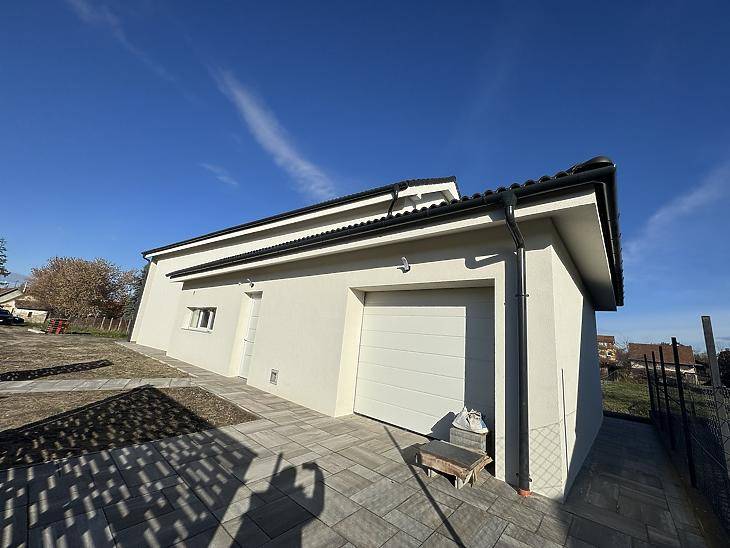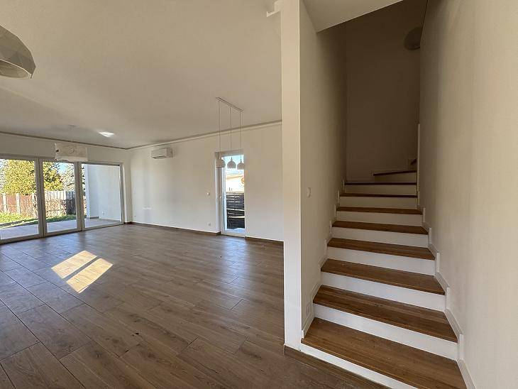 Dunakeszi egyik legcsendesebb, kertvárosi utcájában eladó egy 155 m²-es, ÚJ ÉPÍTÉSŰ, kétszintes, nappali + 3 szobás, önálló családi ház!Az ingatlan átmenő forgalomtól mentes környezetben helyezkedik el, ahol a modern építészet és a praktikus, kényelmes otthonérzet találkozik.Főbb jellemzők• Telek: 726 m²• Lakótér: 155 m², modern elosztással, két szinten• Helyiségek: nappali + 3 hálószoba, 2 fürdőszoba, mosókonyha, gardrób• Saját garázs az épületben• Fedett terasz a földszinten és az emeleten isMűszaki tartalom• Korszerű, hőszivattyús hűtő-fűtő rendszer• Padlófűtés és mennyezethűtés a maximális komfortért• Kiegészítő klímaberendezés• Prémium minőségű nyílászárók• Modern, energiahatékony szigetelés• Kulcsrakész átadás, beépített konyhabútorral