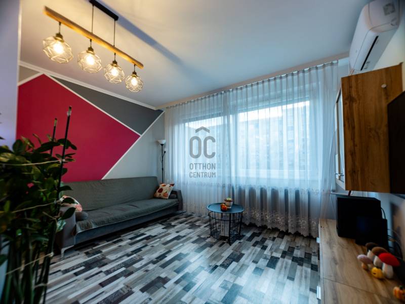 Kecskeméten, a Széchenyivárosban ajánlom figyelmébe ezt a felújított 2 szobás panellakást! A felújítás során kicserélték a villanyhálózatot, műanyag nyílászárókat raktak be és igényes burkolatokkal látták el a fürdőszobát, konyhát és a lakószobákat. A nappaliból leválasztásra került egy praktikus hálófülke, amely könnyen visszabontható. Hűtő-fűtő klímái gondoskodnak az optimális hőmérsékletről minden évszakban! Teljes rezsije 35 ezer forintból kihozható a téli időszakban.Ez az ingatlan a \"Hűség csomag\" megbízási portfólióhoz tartozik. Részletek az Otthon Centrum weboldalán.